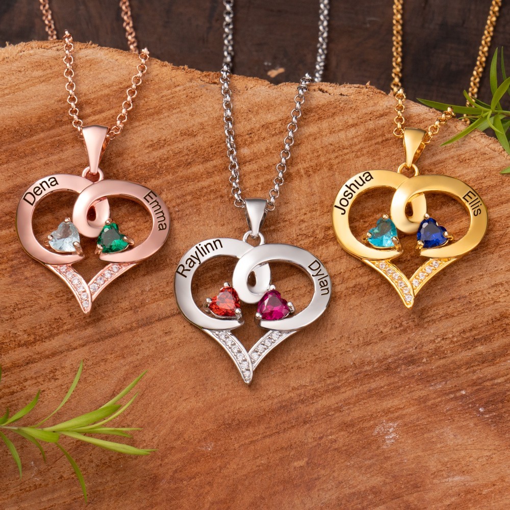Aangepaste geboortesteenketting met gegraveerde namen, aandenkens voor echtgenotes, betekenisvolle cadeau-ideeën voor vriendinnen