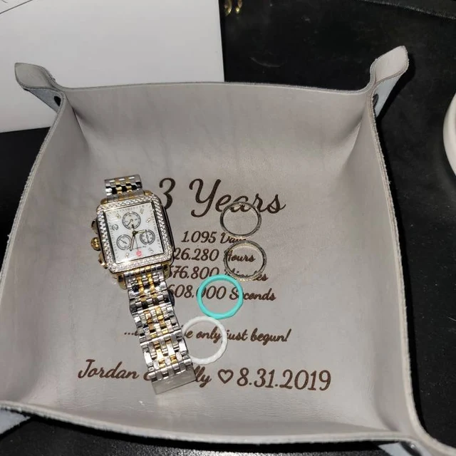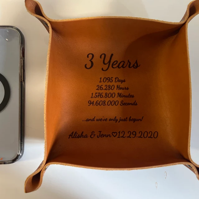 Aangepaste koppels gegraveerde leren valet tray unieke geschenken voor echtgenoot vriend jubileum cadeau kerstcadeau