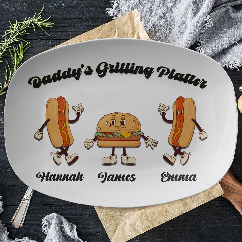 Gepersonaliseerde grillschotel voor vaders met namen van kinderen Unieke cadeau-ideeën voor Vaderdag