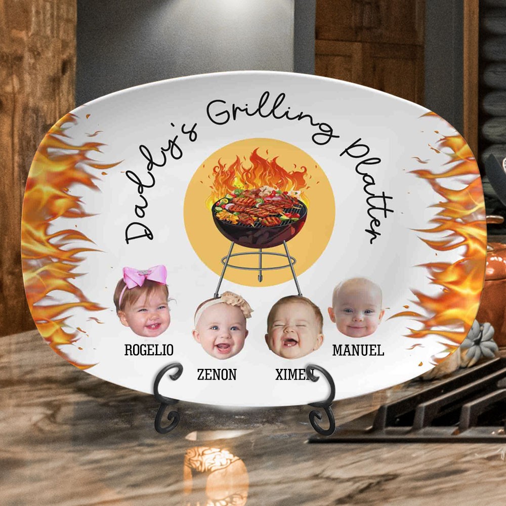Gepersonaliseerde grillschotel voor papa met foto en namen van de kinderen als aandenken voor cadeaus voor Vaderdag