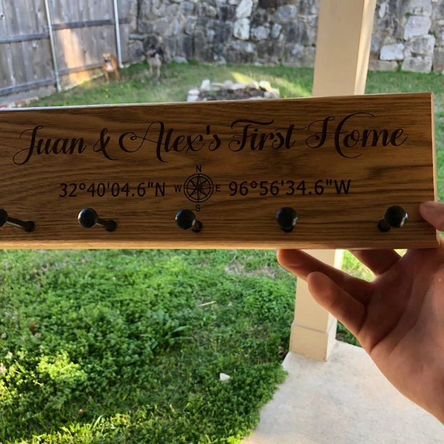 Aangepaste gegraveerde houten sleutelhanger voor aan de muur Housewarming cadeau voor koppel Huwelijkscadeau