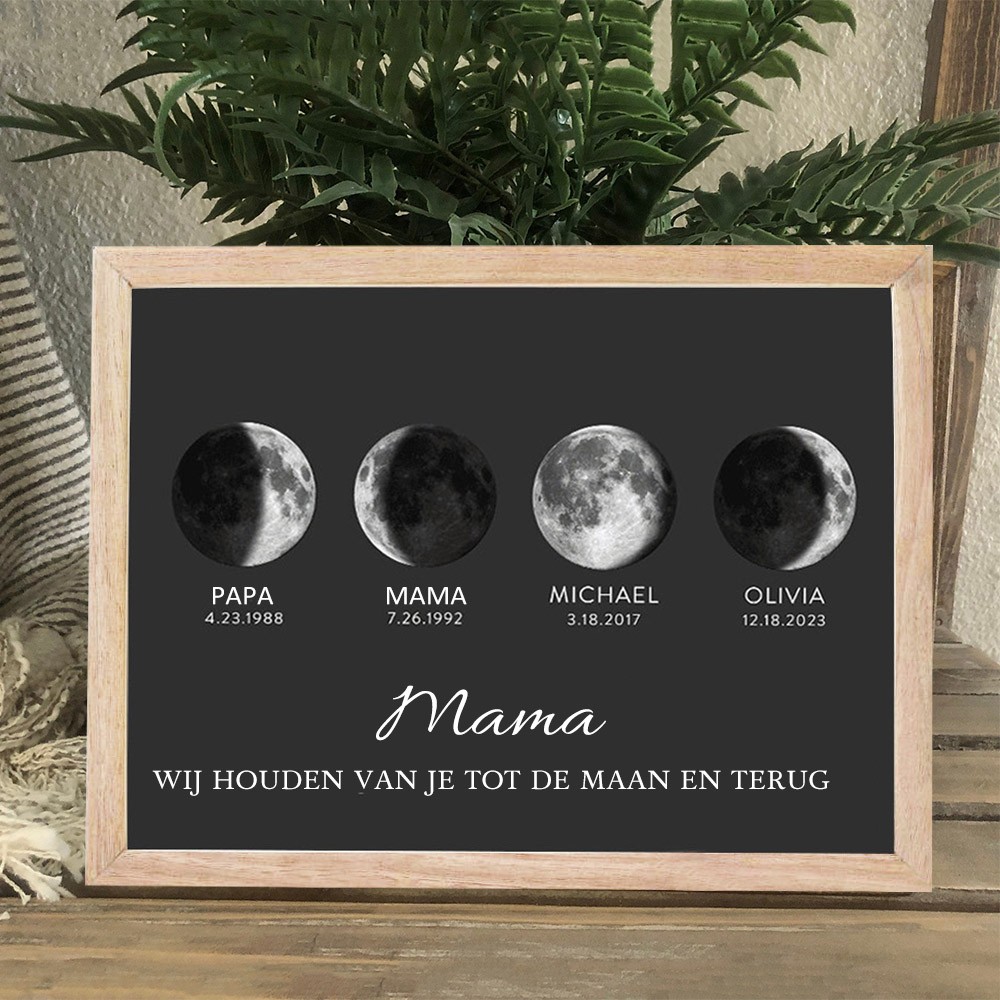 Aangepast familie maanfase houten frame bord aandenken geschenken Moederdag cadeau-ideeën