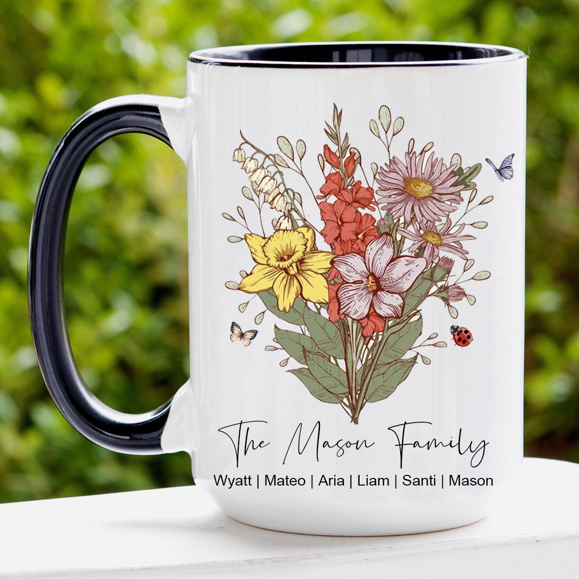 Aangepaste tuin geboortebloemboeket mok met namen Moederdag cadeaus Familie cadeau-ideeën voor moeder en oma