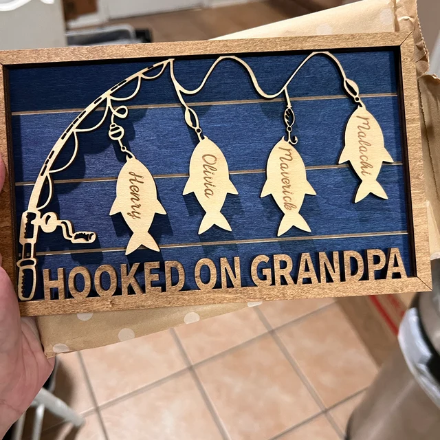Aangepast Granddaddy's Catch Fishing Houten Frame Bord Met Namen Van De Kleinkinderen Uniek Vaderdagcadeau