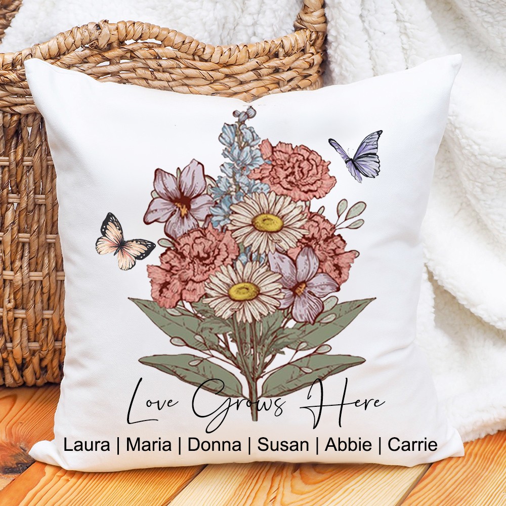 Enhance your home with a touch of personalized beauty by gifting your grandma, mom, wife, best friend, or loved ones with this delightful watercolor floral arrangement, where each flower represents the unique essence of your grandchildren or children. This sentimental birth month flower pillow not only adds a charming accent to any space but also serves as a heartwarming reminder of cherished memories. Perfect for birthdays, anniversaries, Mother's Day, Christmas, or simply to express your love and appreciation.
