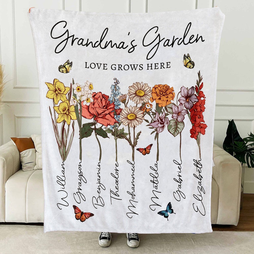 Aangepaste oma's tuin Liefde groeit hier Geboorte bloemendeken Cadeau voor moeder Oma Kerstcadeau-ideeën