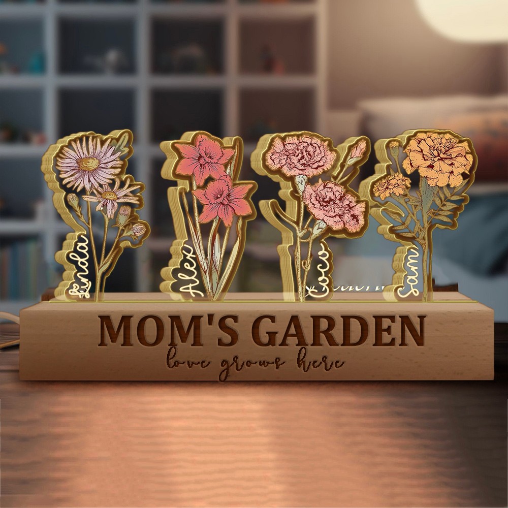 Aangepaste oma's tuin Liefde groeit hier Geboortebloem Houten nachtlampje Unieke geschenken voor moeder Oma Kerstcadeau