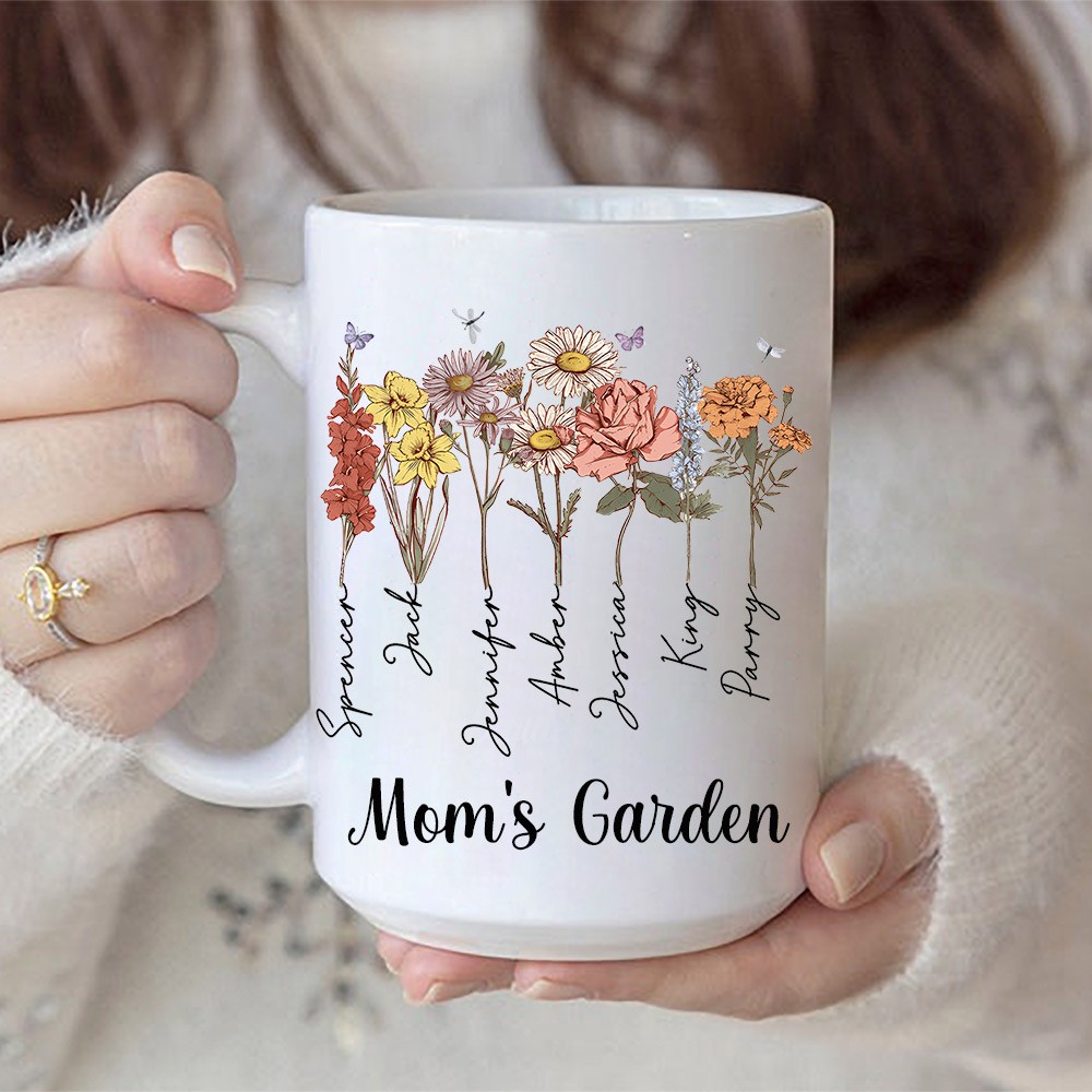 This custom grandma garden mug is a heartfelt present for your grandmother, mom, nana, or mimi. Each delicate bloom in grandma's garden symbolizes her cherished children and grandchildren. Rendered in exquisite watercolor, these floral designs capture the essence of their beauty. Select flower motifs according to your loved ones' birth months or simply opt for your favorite blossoms.