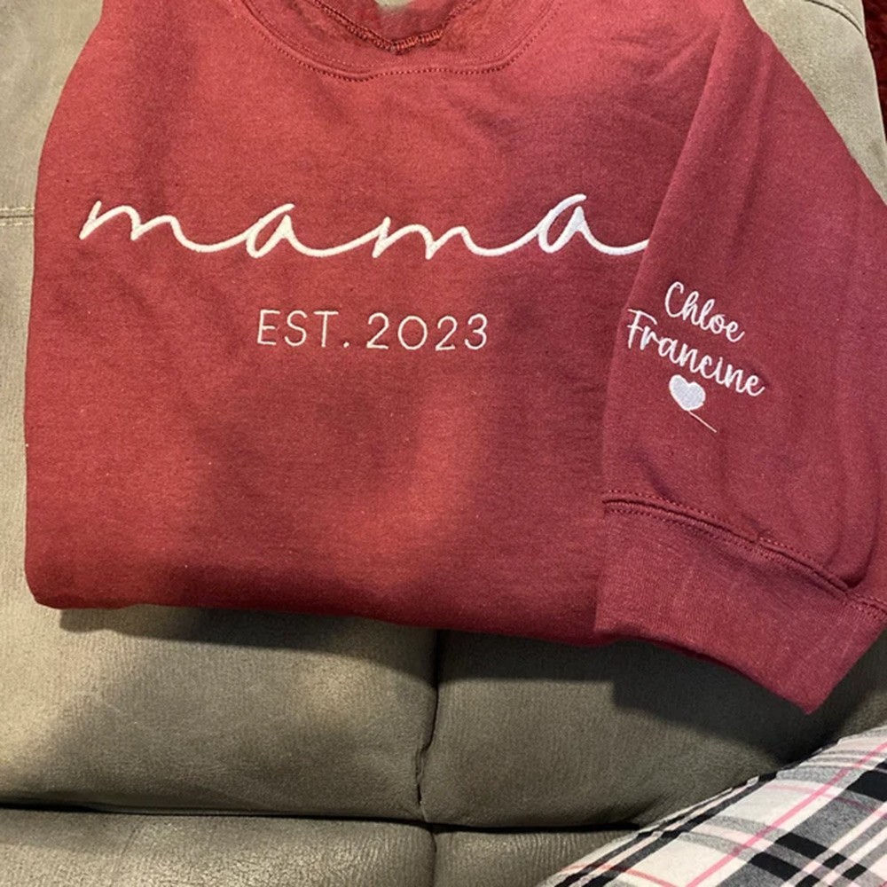 Aangepaste Mama Geborduurde Sweatshirt Hoodie Met Datum Cadeau-ideeën Voor Moeder Oma