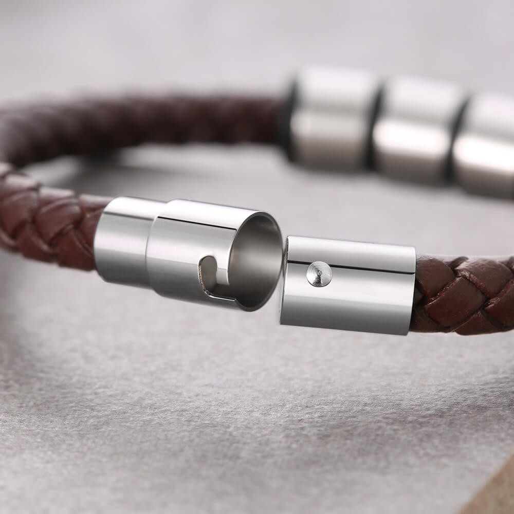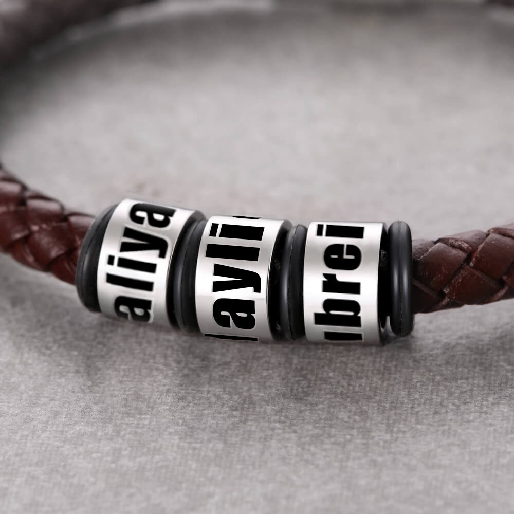 Aangepaste herenarmband van bruin leer met gegraveerde naamkralen Cadeau-ideeën voor Vaderdag