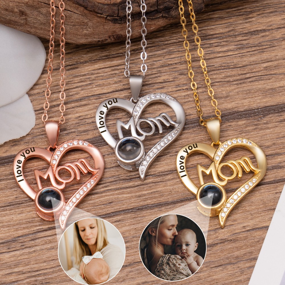 Aangepaste Mom I Love You Hartvormige Fotoprojectie Ketting Met Afbeelding Binnenin Uniek Cadeau Voor Nieuwe Moeder