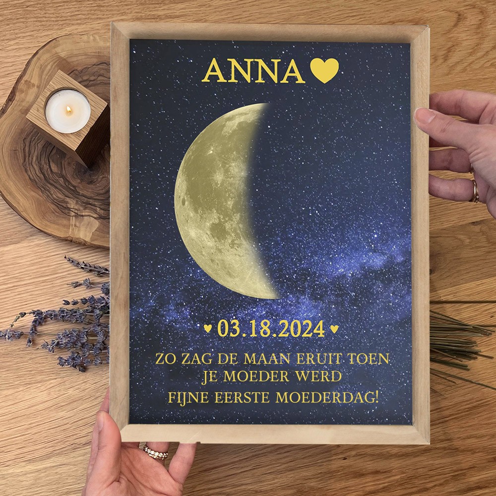Aangepaste moeder maanfase houten fotolijst bord met datum Eerste Moederdag cadeau-ideeën