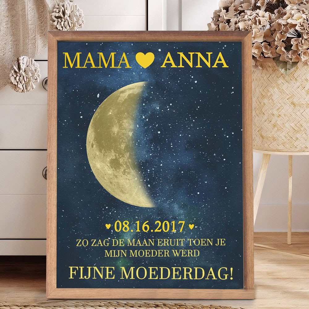 Aangepast moeder maanfase houten fotobord met datum uniek Moederdag cadeau