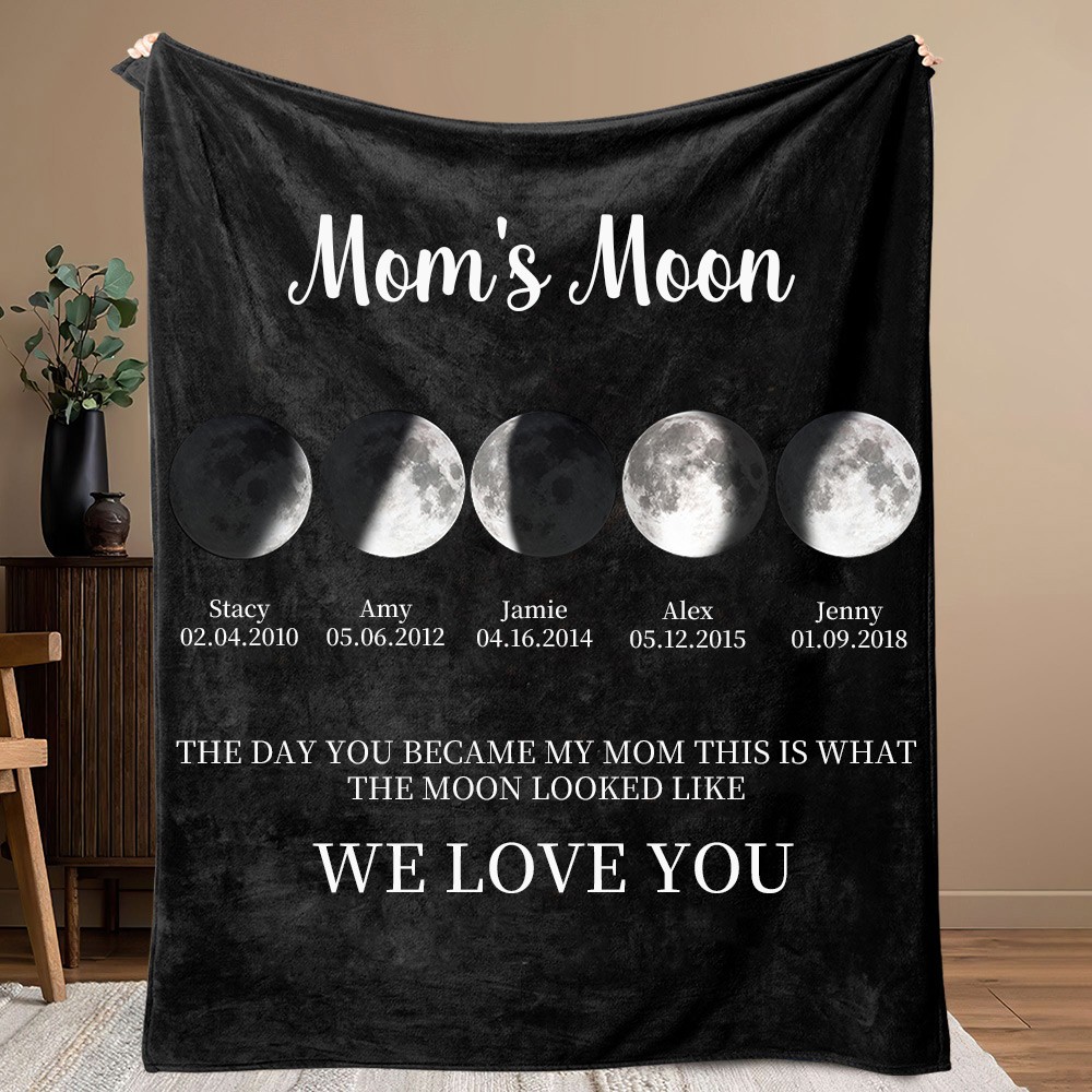 Aangepaste Mom's Moon Moon Phase-deken met namen van kinderen Uniek aandenken voor mama Perfecte ideeën voor Moederdagcadeaus