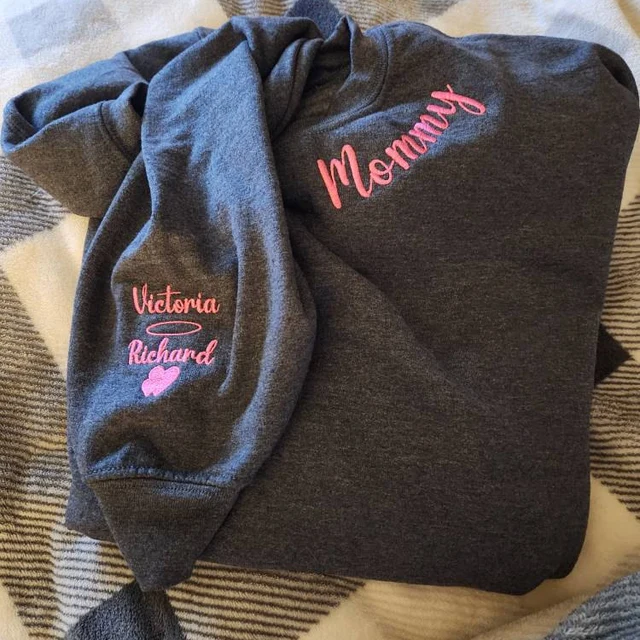 Aangepaste Mommy Geborduurde Sweatshirt Hoodie Met Namen Op De Mouw Moederdag Cadeau-ideeën