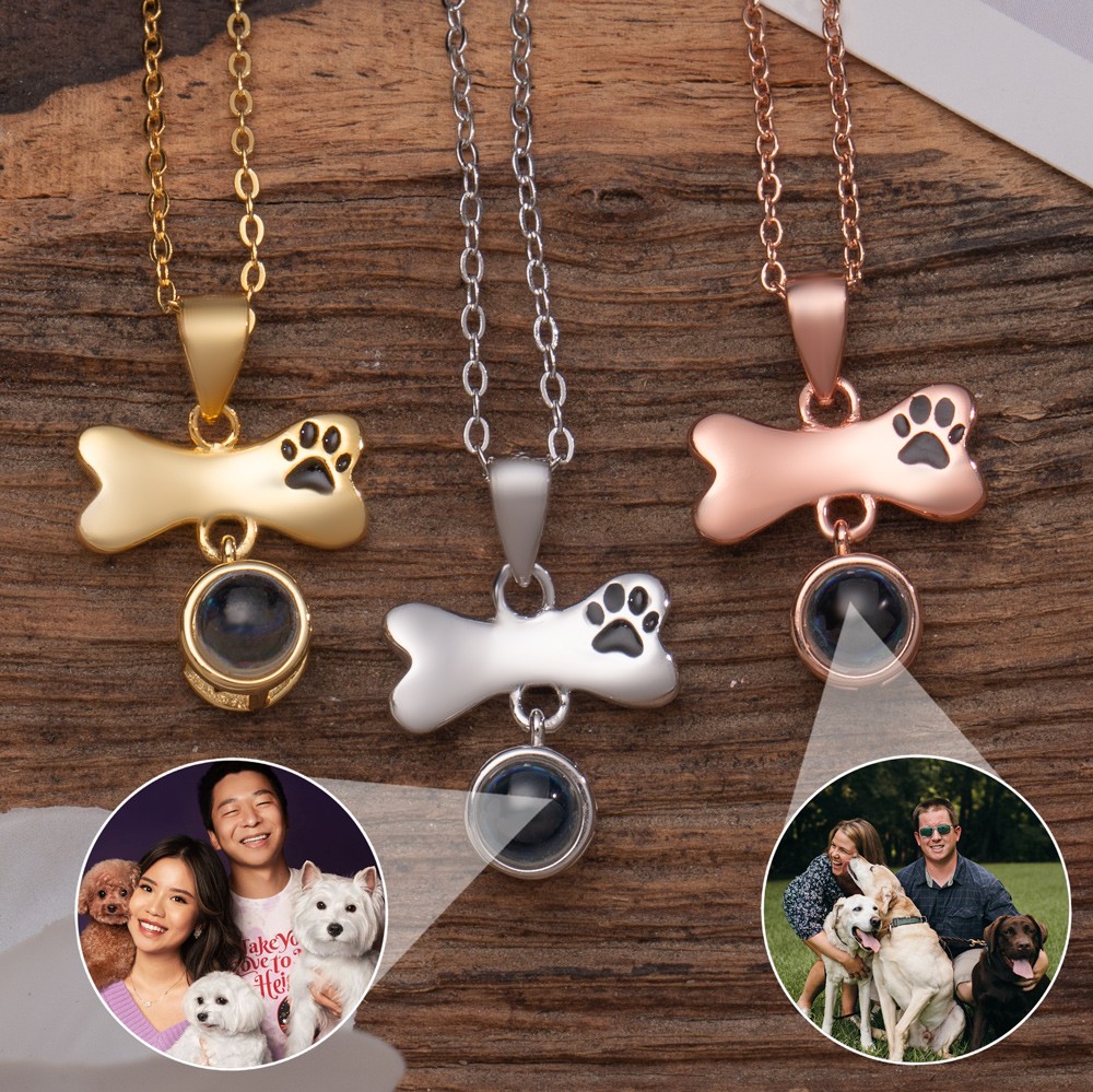 Aangepaste Pet Paw Print Bone Foto Projectie Ketting Met Afbeelding Binnenin Uniek Cadeau Voor Dierenliefhebber