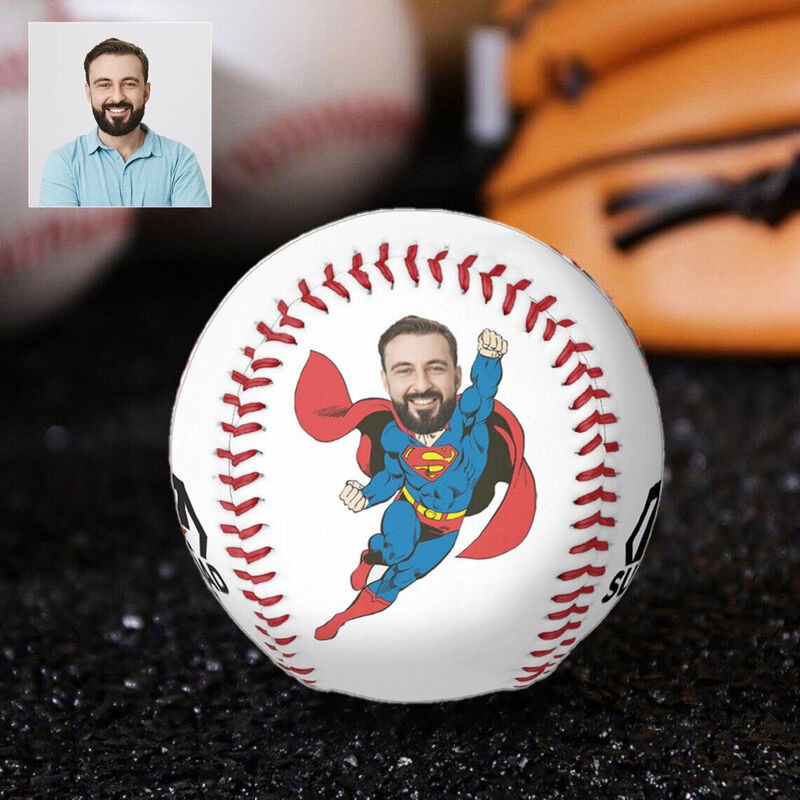 Aangepaste Super Dad Hoofd Foto Honkbal Uniek Leuk Cadeau Voor Papa Vaderdag Cadeau Ideeën