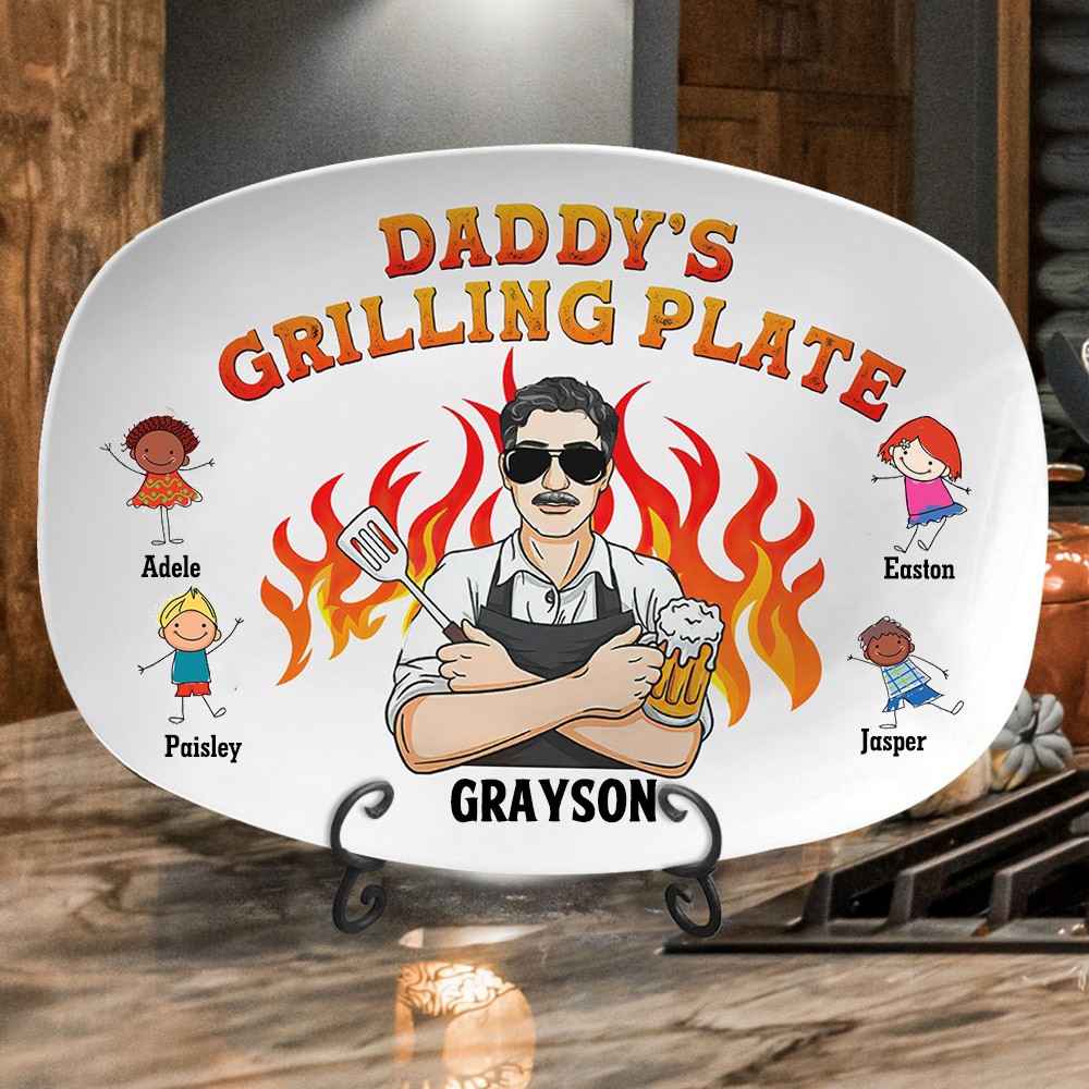 Gepersonaliseerde grillplaat voor papa met de naam van de kinderen voor papa Vaderdagcadeau