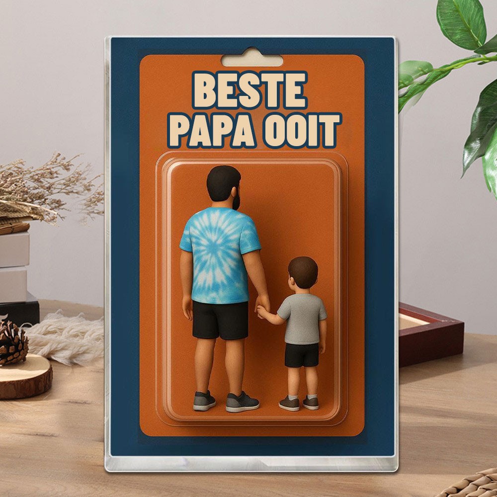 De ultieme vader- en kind-beeldje op maat gemaakt van bouwstenen, foto, activiteit, pop in acrylblok, een uniek cadeau voor papa voor Vaderdag