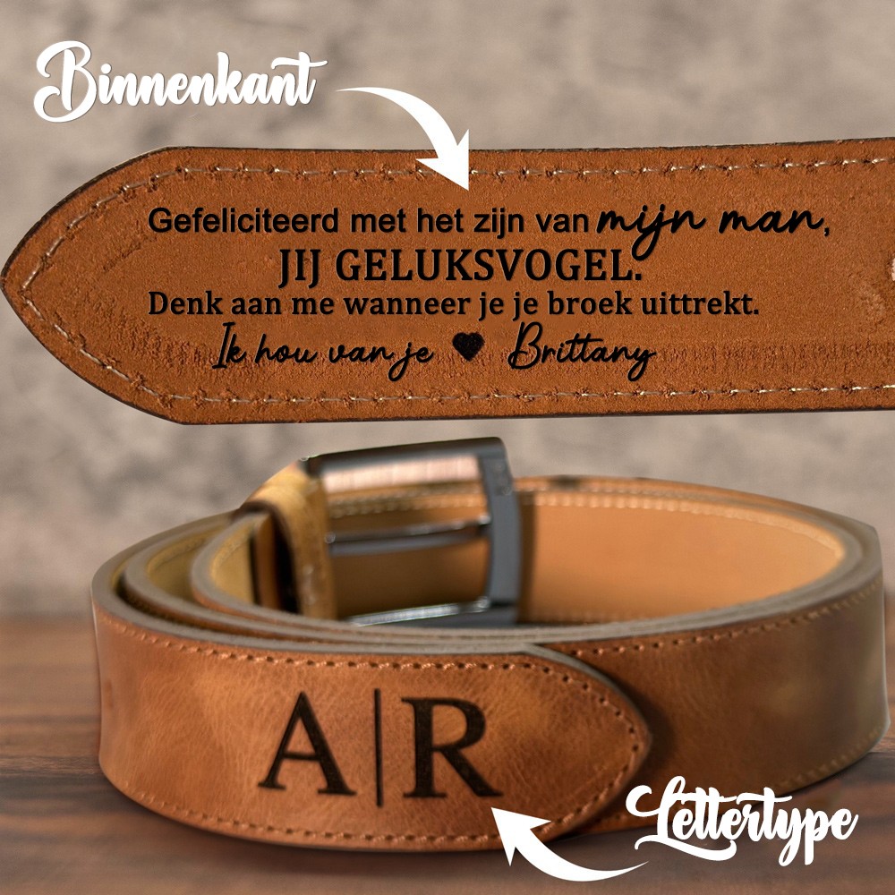Denk aan mij als je je broek uittrekt. Gepersonaliseerde leren riemen voor mannen. Cadeaus voor een huwelijksverjaardag voor je man. Unieke cadeaus voor Vaderdag.