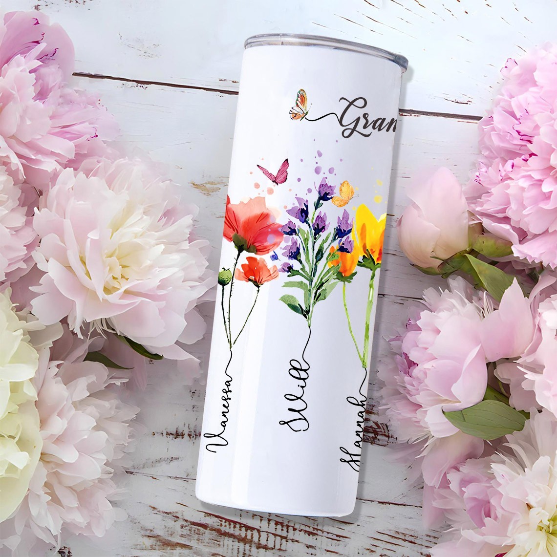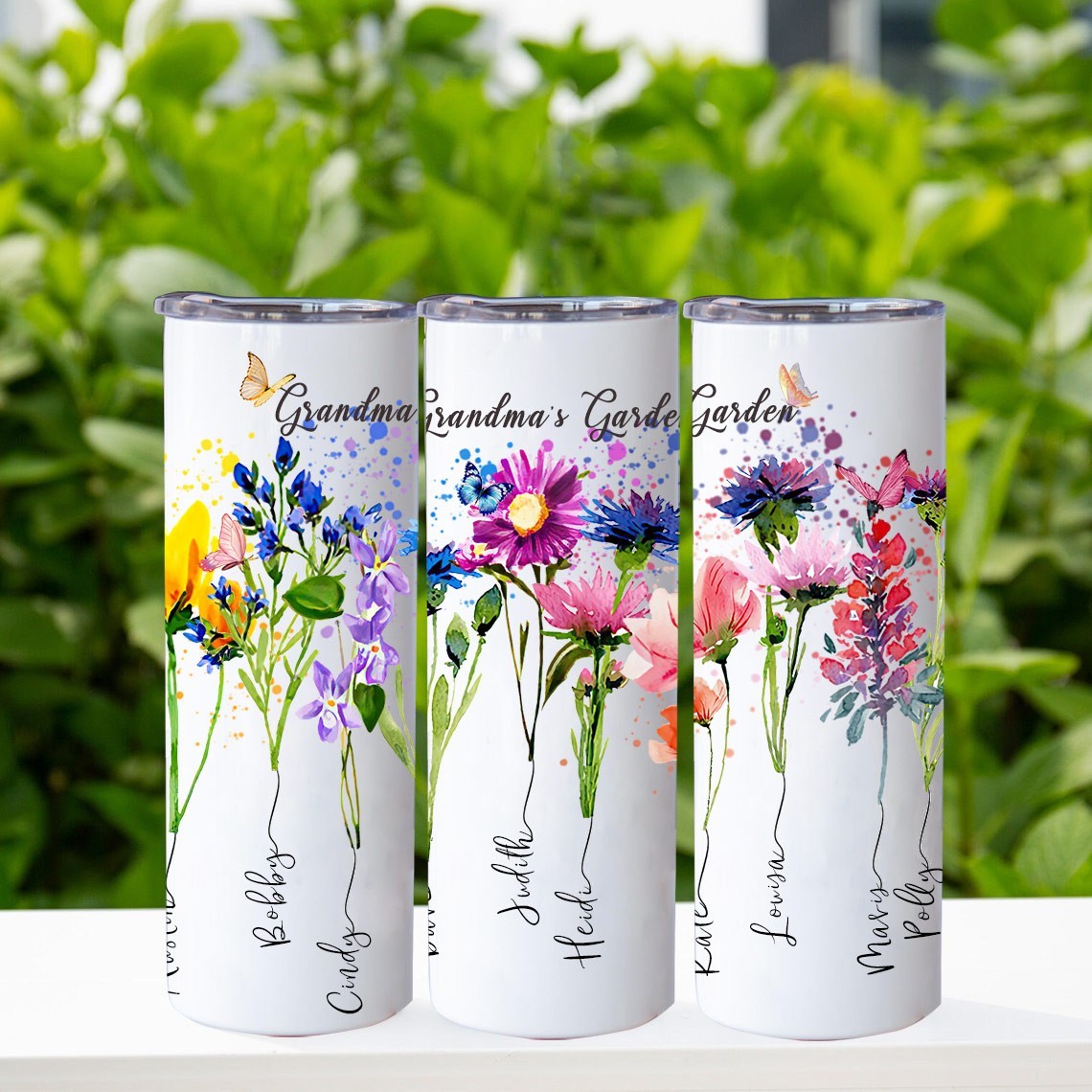 Gepersonaliseerde geboortebloembeker voor moeders in de tuin