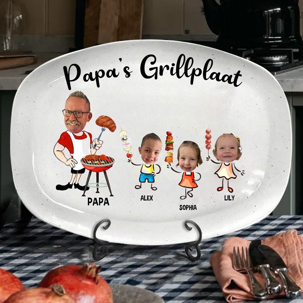 Gepersonaliseerd barbecuebord voor papa met foto en namen van de kinderen, leuke keukencadeaus voor papa, uniek Vaderdagcadeau-idee