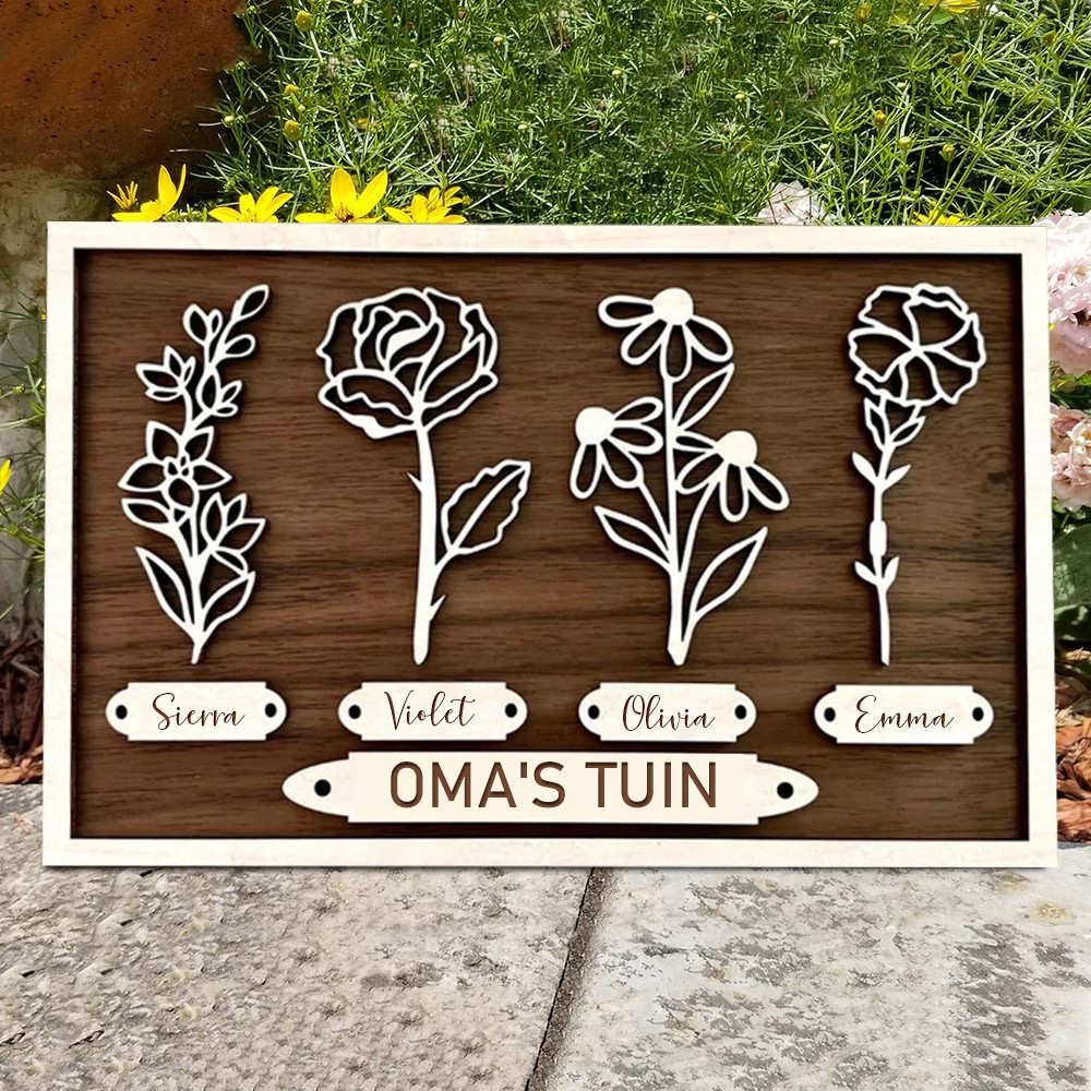 Gepersonaliseerd Houten Geboortebloem Naam Bord - Oma's Tuin Frame - Uniek Familie Cadeau voor Mama of Oma - Moederdag Cadeau