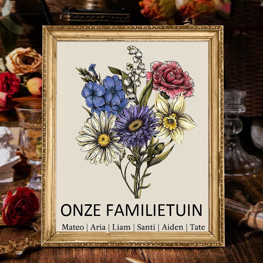 Gepersonaliseerde Aquarelkunst Oma's Tuin Geboortemaand Boeket Lijst Met Namen van Kleinkinderen Unieke Verjaardags Herinneringscadeaus voor Moeder Oma Kerstcadeau
