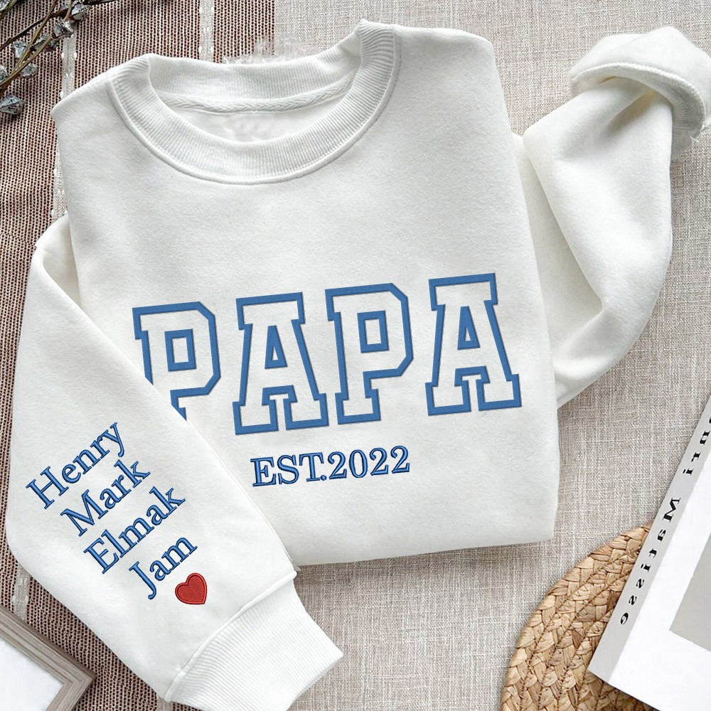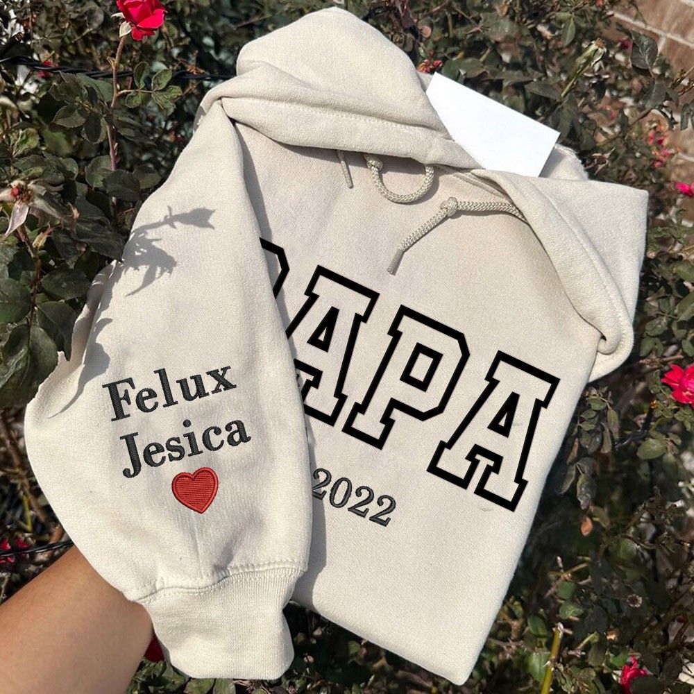 Gepersonaliseerde hoodie met capuchon voor papa met jaartalborduursel op de mouwen Kindernamen, perfecte familiecadeaus voor papa Unieke Vaderdagcadeaus