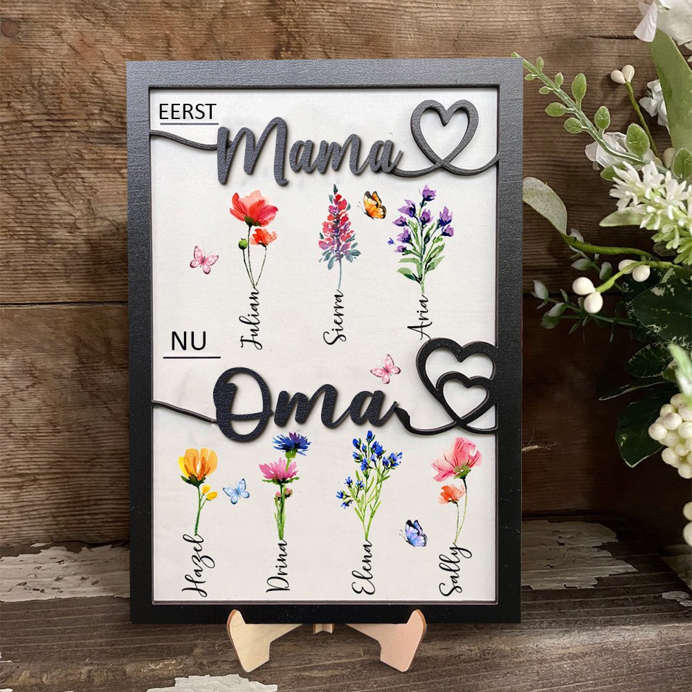Gepersonaliseerde houten eerste moeder, nu oma, geboortemaand, bloemenprint, familiekaderbord met kindernamen, uniek verjaardagscadeau voor moeder, oma, Moederdag cadeau-ideeën