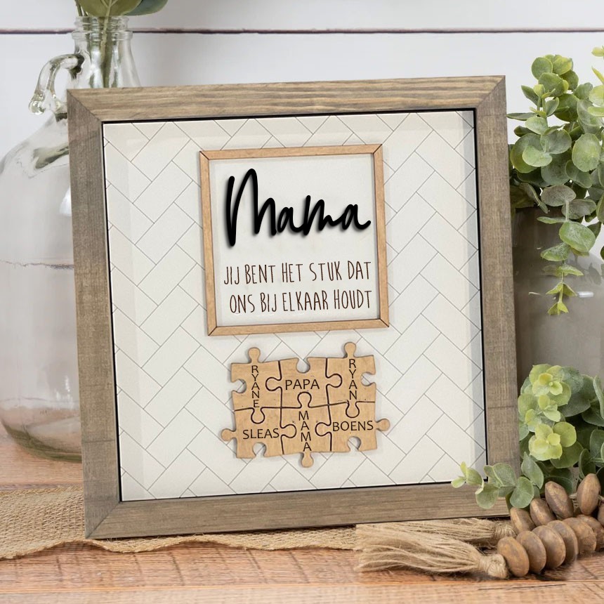 Gepersonaliseerde houten familiepuzzel met stukjes als bord, cadeau voor mama met kindernamen, uniek verjaardagscadeau voor mama, oma, Moederdag cadeau-ideeën