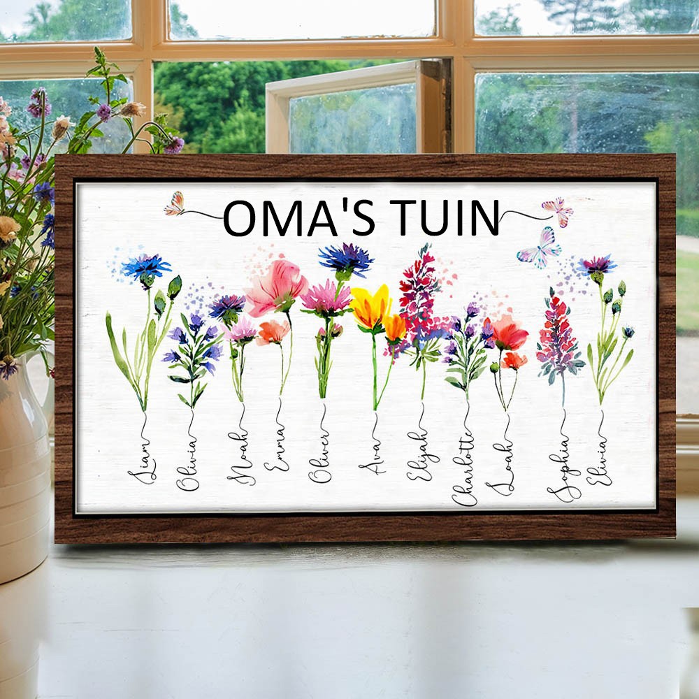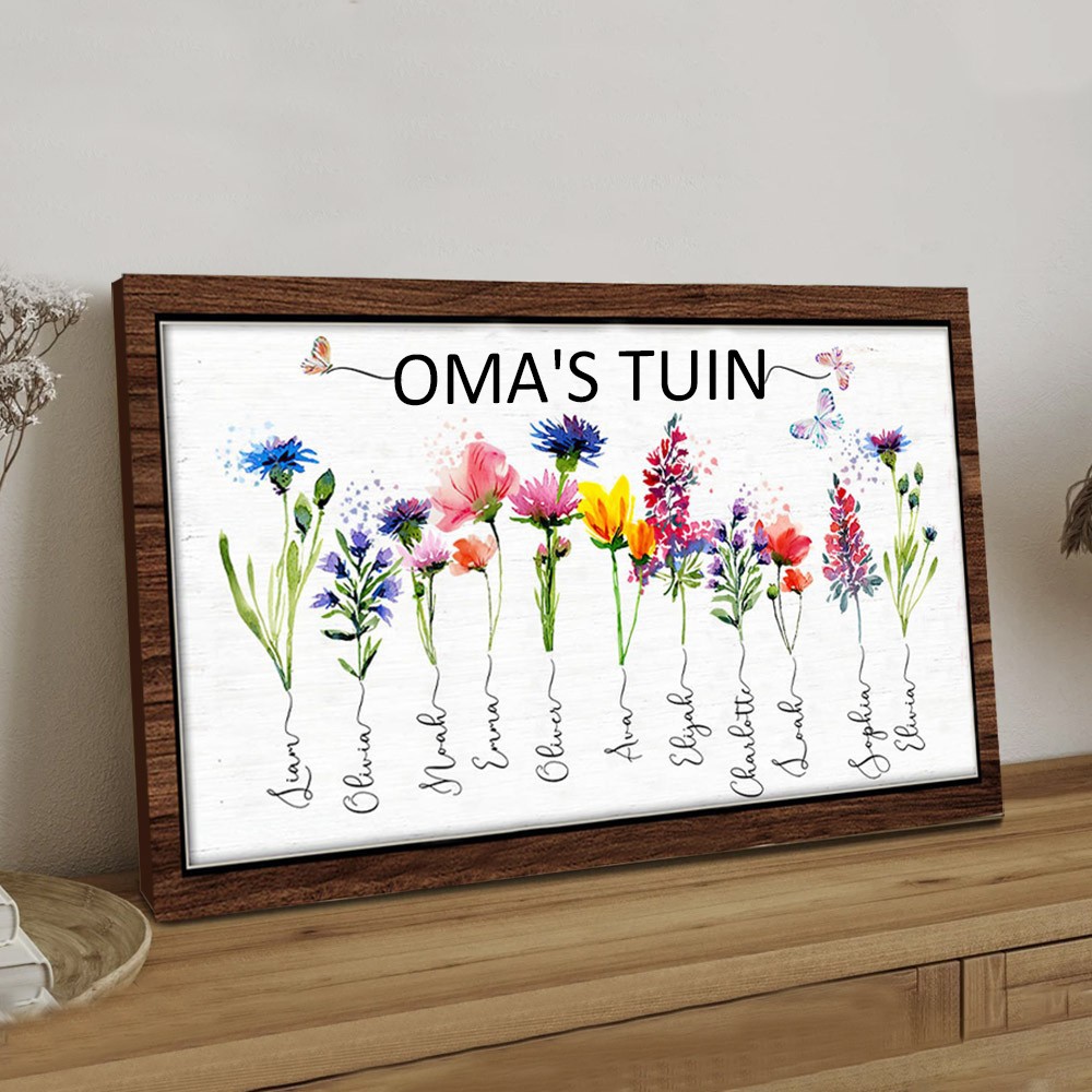 Geef nog meer cadeaus met een gepersonaliseerde tuinprint in de vorm van een geboortebloem: een ideaal cadeau om moeder of oma te eren op Moederdag, Kerstmis of verjaardagen!