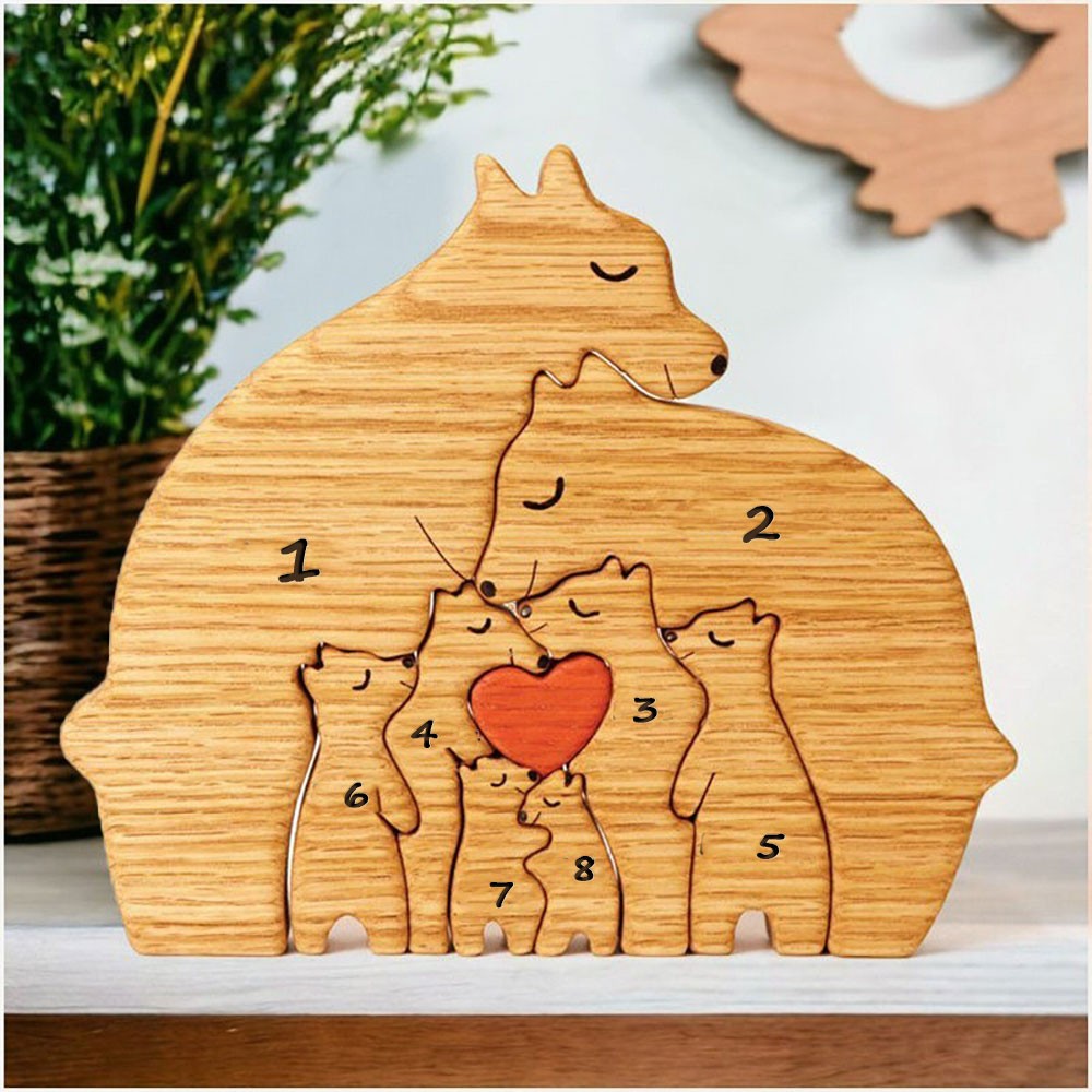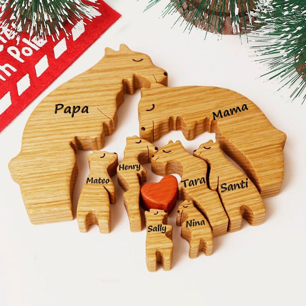 Gepersonaliseerde houten knuffelbeer-familiepuzzelblokken met kindernamen: een uniek cadeau voor moeder en oma. Ideeën voor Moederdagcadeaus.