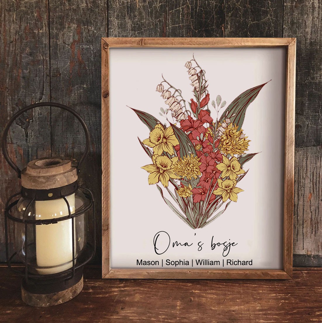Gepersonaliseerd Houten Moeders Tuin Geboortemaand Bloemenboeket Print Fotolijst Bord met Kindernamen - Unieke Verjaardagscadeaus voor Moeder, Oma, Zwangerschapscadeau, Moederdag Cadeau-ideeën.