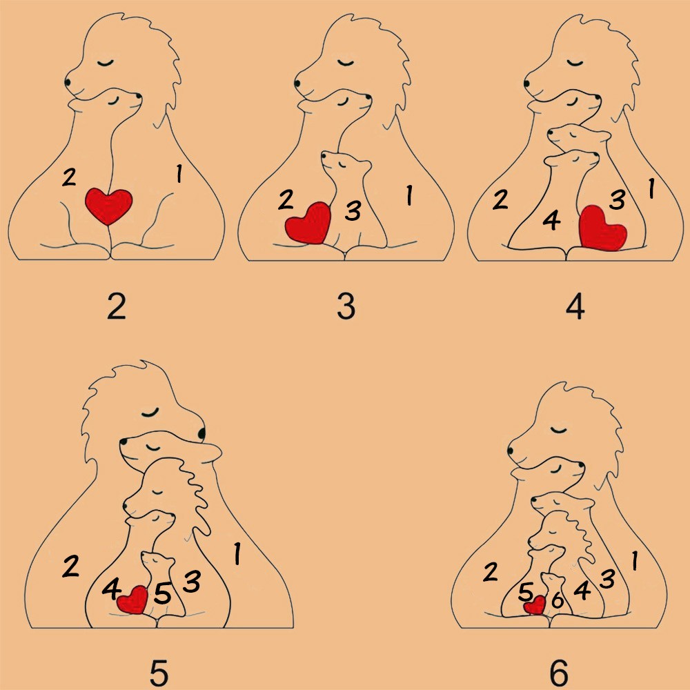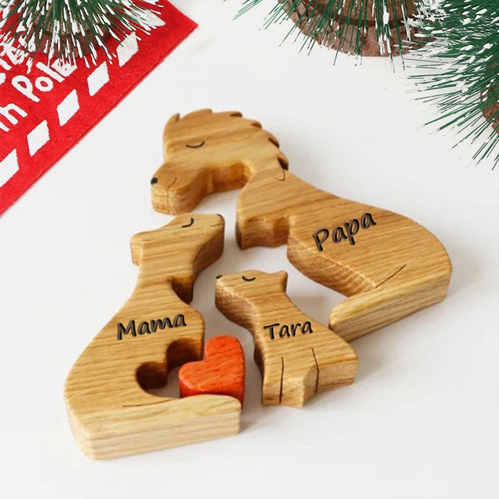 Gepersonaliseerde houten puzzelblokken met leeuwenfamilie en namen van de leden. Uniek cadeau voor moeder en oma. Ideeën voor Moederdagcadeaus.