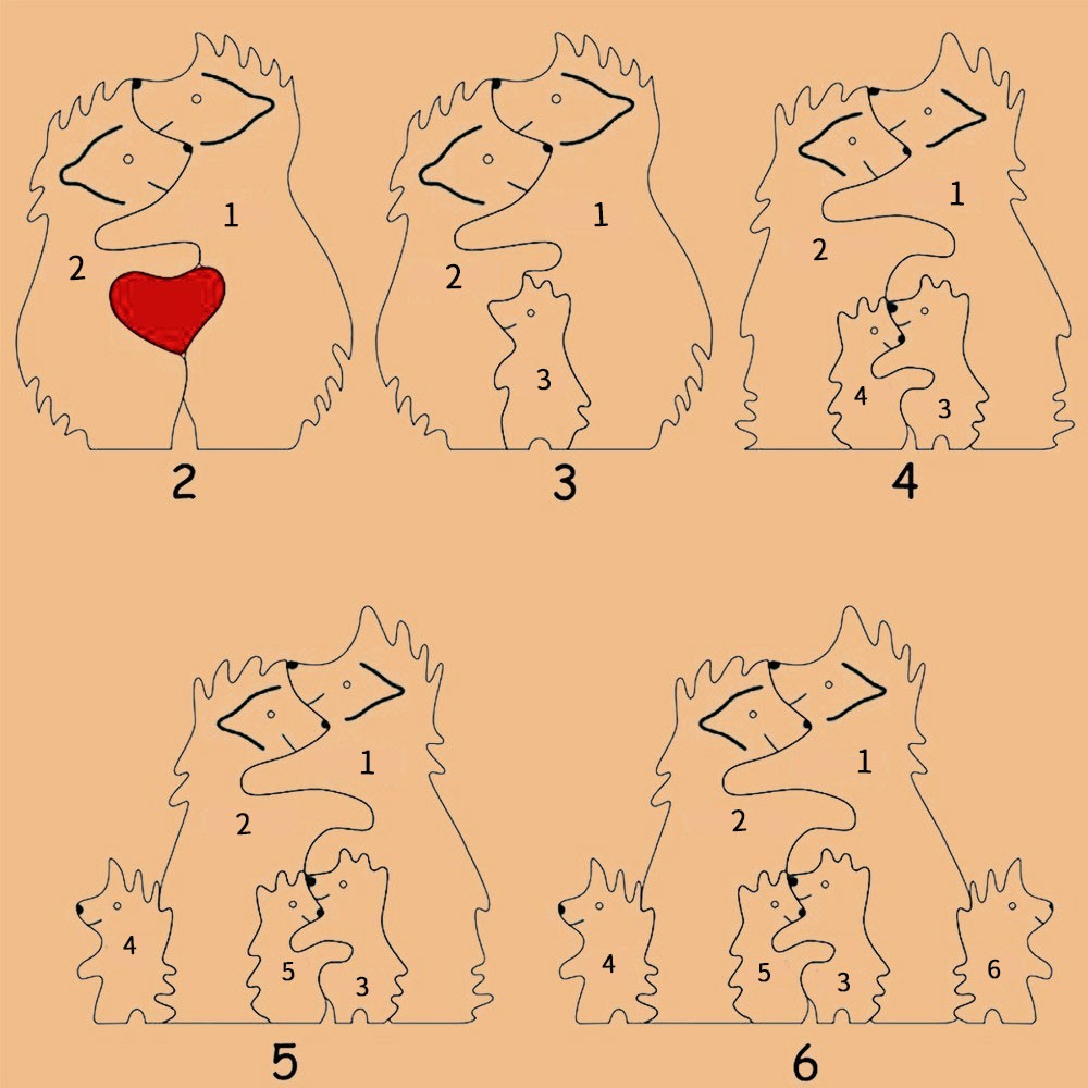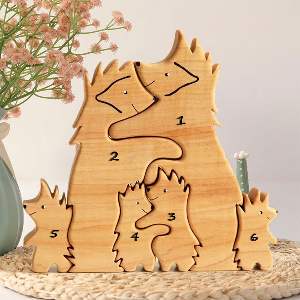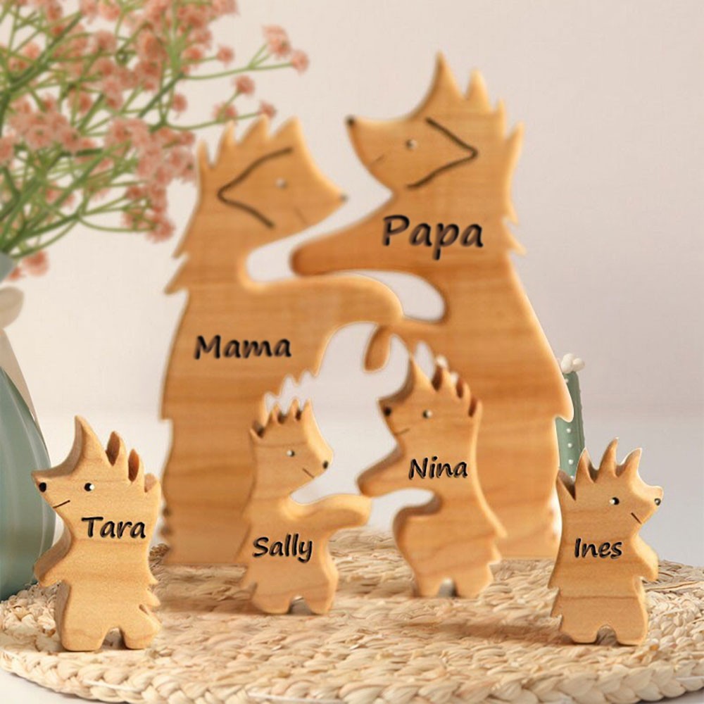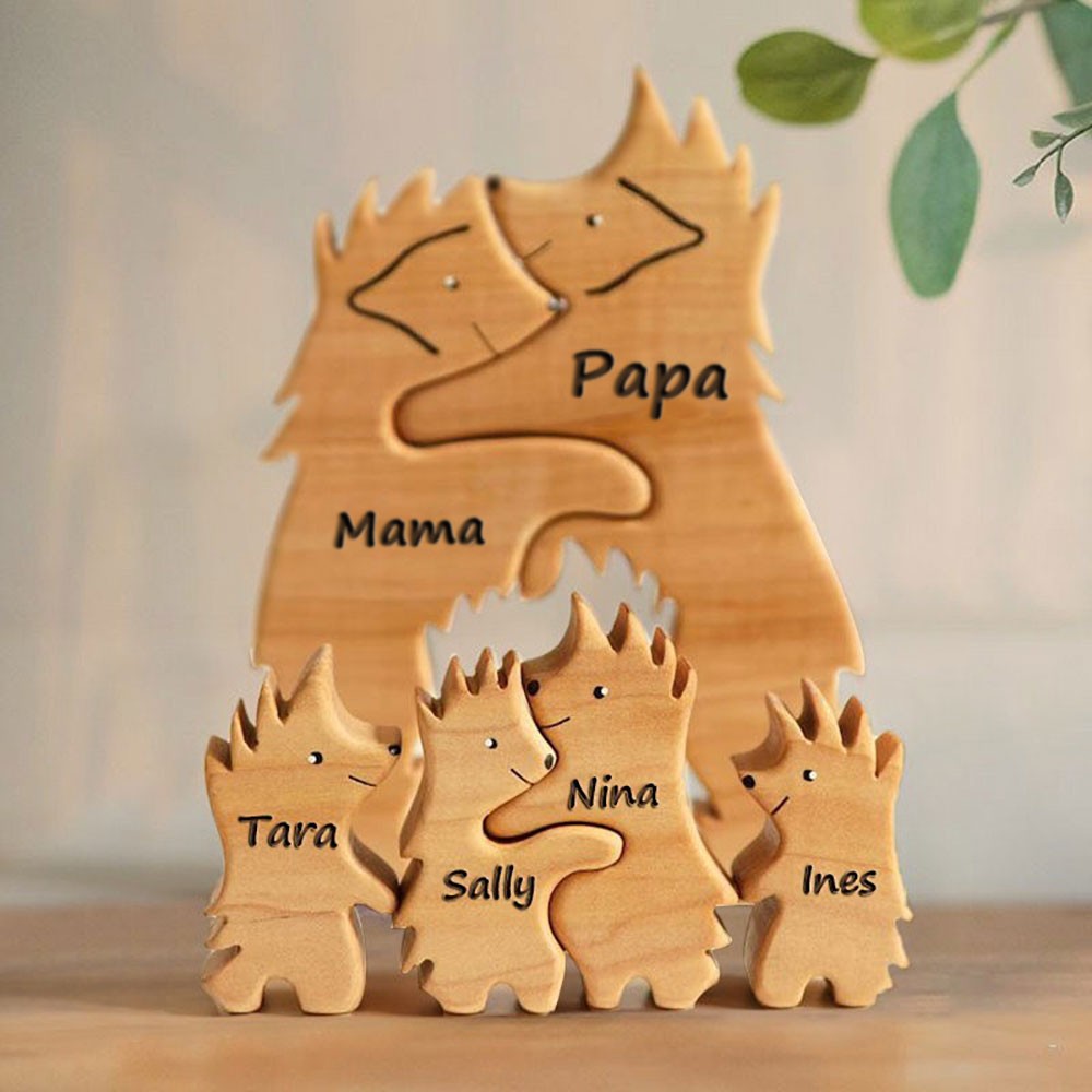 Gepersonaliseerde houten puzzelblokken met namen van de egelfamilie, met kindernamen. Uniek cadeau voor moeder en oma. Cadeau-ideeën voor Moederdag.