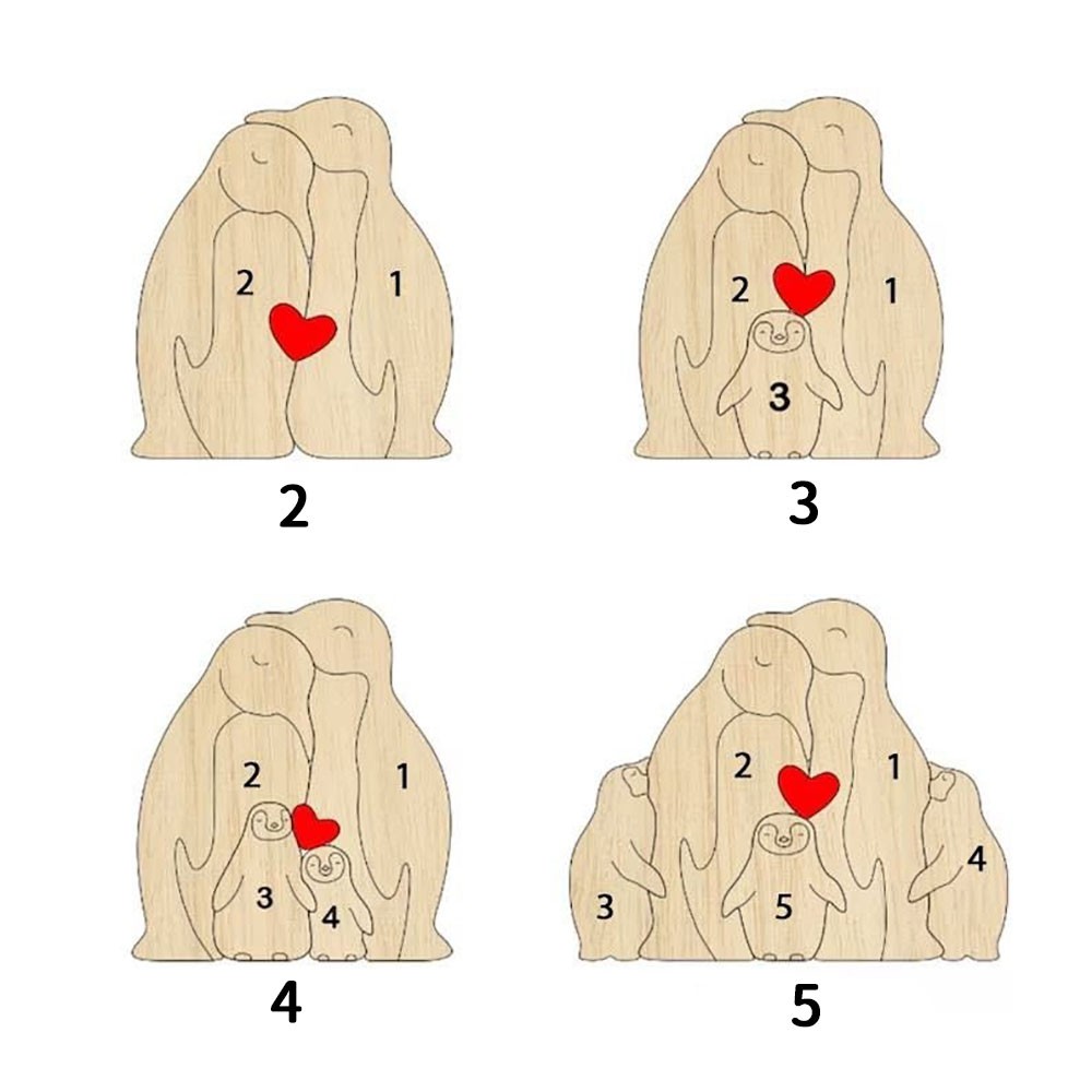 Gepersonaliseerde houten puzzelblokken met pinguïnfamilie en kindernamen. Uniek aandenken voor moeder en oma. Cadeau-ideeën voor Moederdag.