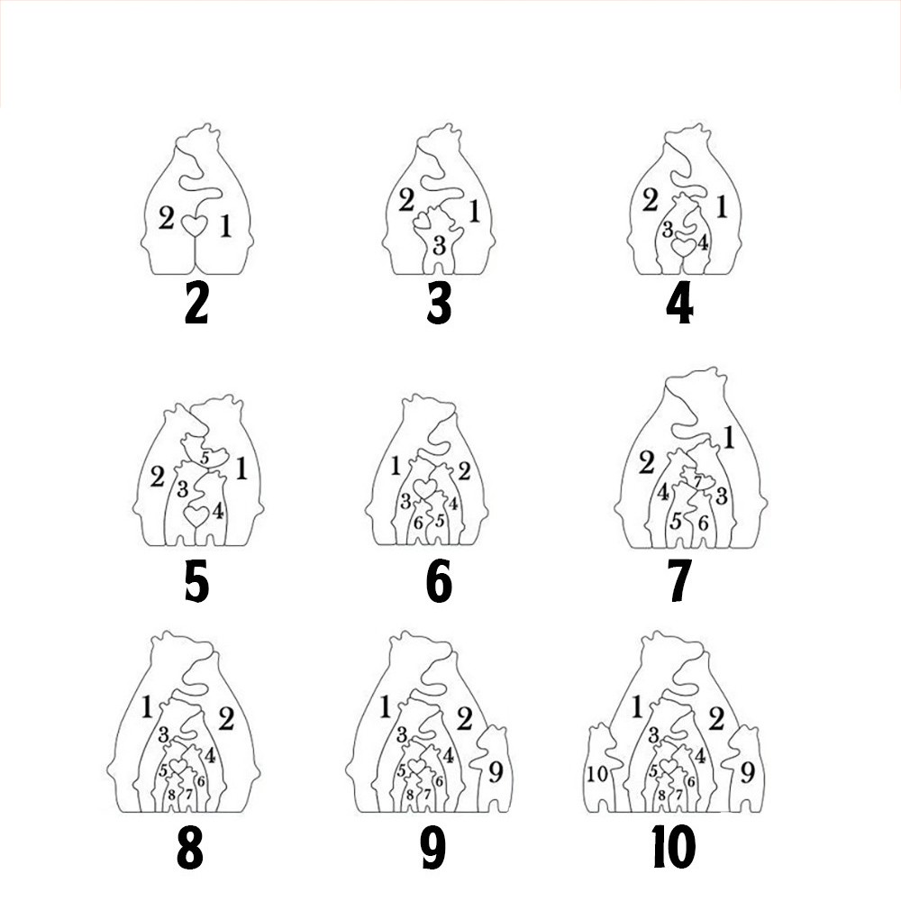 Gepersonaliseerde houten puzzelblokken met sjaal in de vorm van een beerfamilie met unieke namen. Cadeau voor moeder en oma. Ideeën voor Moederdagcadeaus.