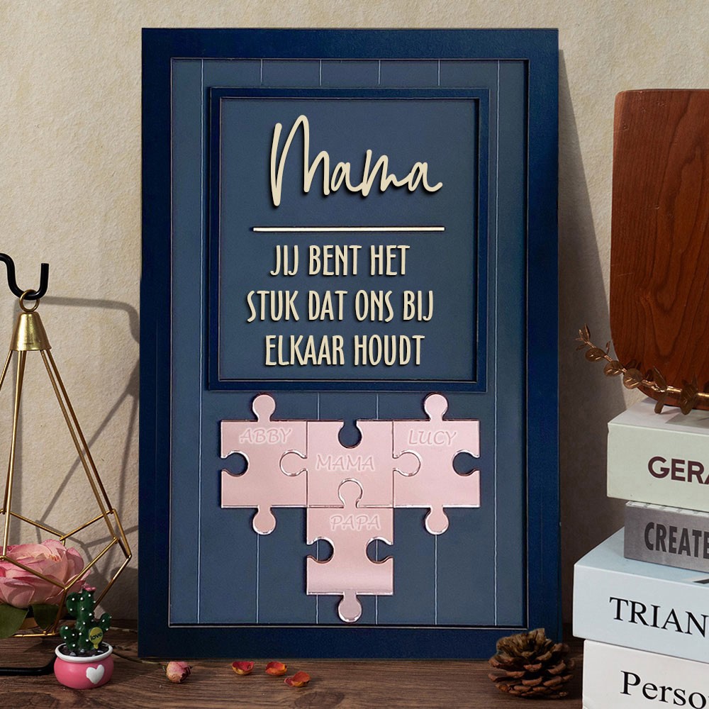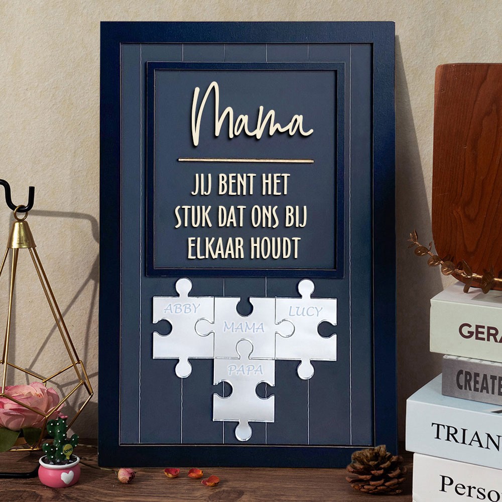 Gepersonaliseerde houten puzzelstukjes voor mama's, familiebord met namen van kinderen, uniek cadeau voor mama en oma dat ons bij elkaar houdt. Ideeën voor Moederdagcadeaus
