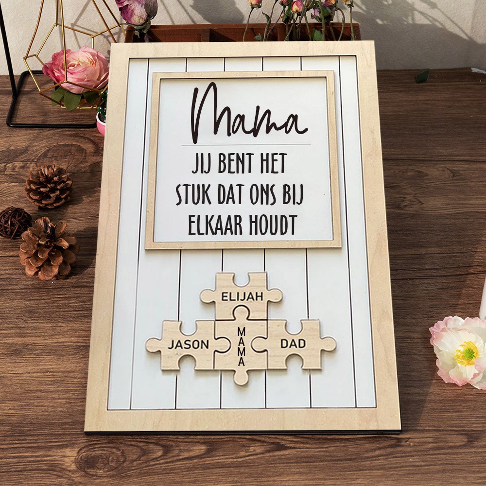 Gepersonaliseerde houten puzzelstukjes voor moeders met namen van kinderen, een familiegeschenk als aandenken voor moeder en oma, unieke ideeën voor Moederdagcadeaus