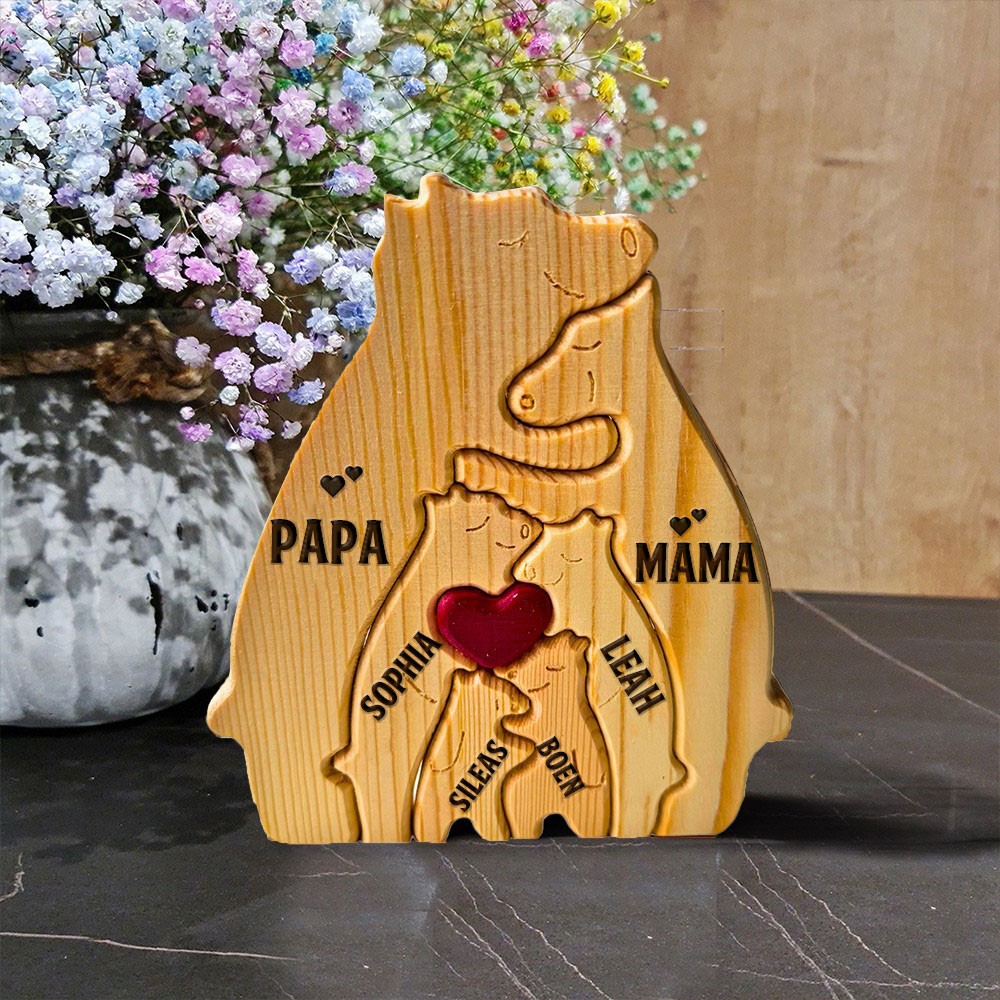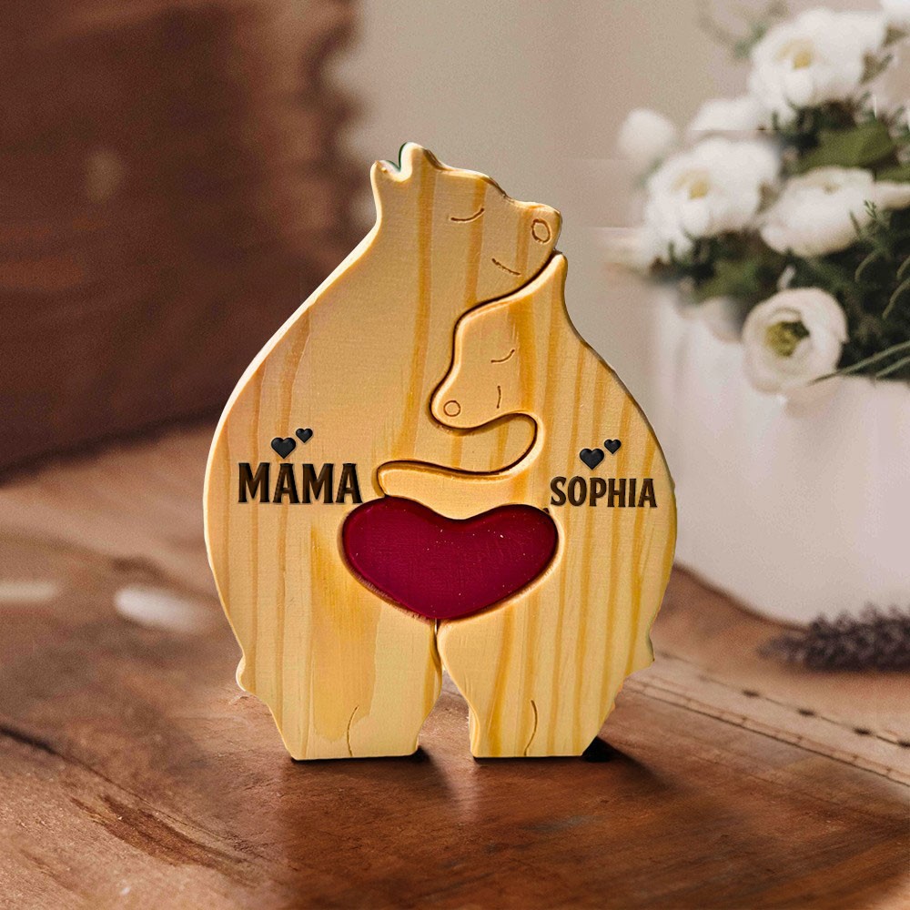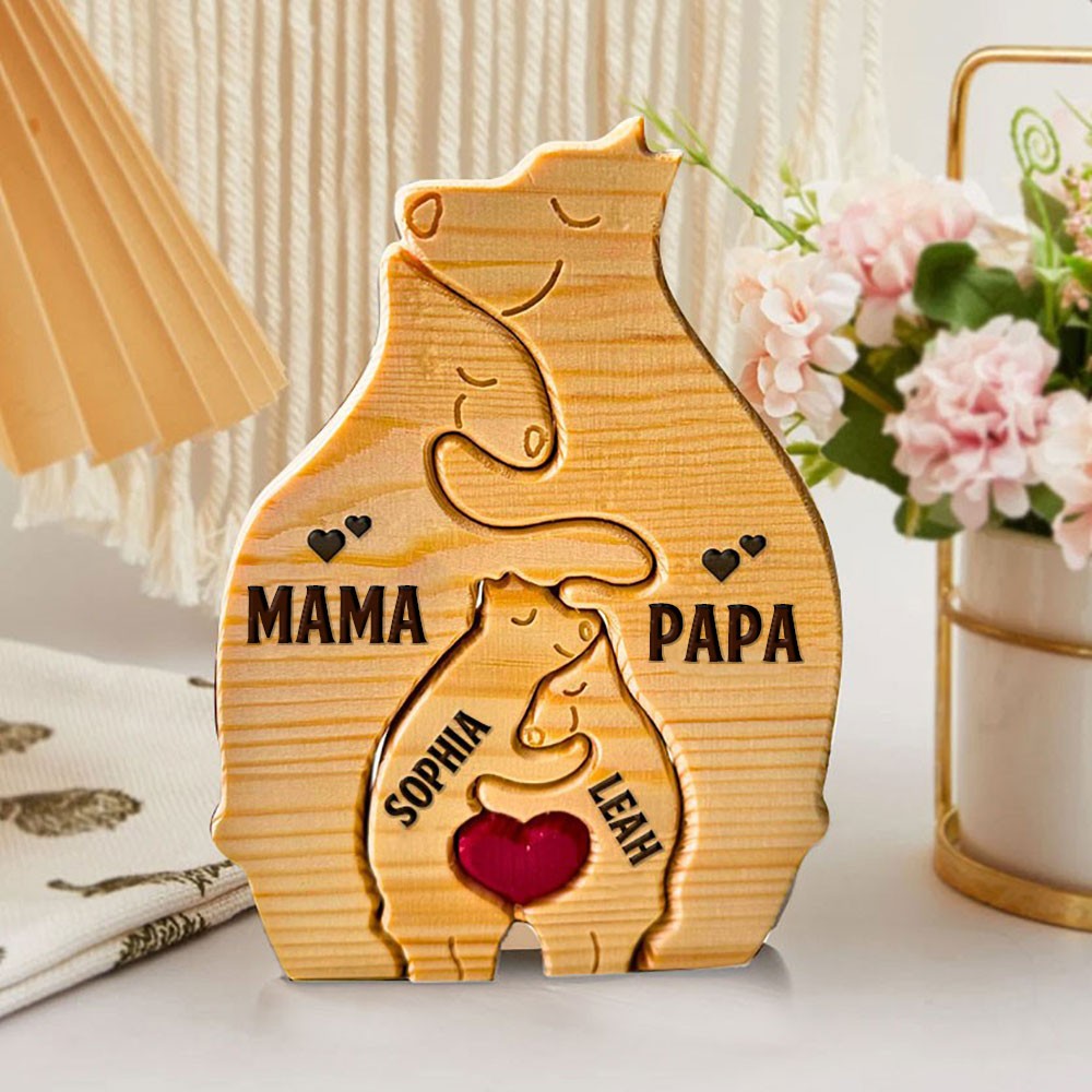Gepersonaliseerde knuffelbeertjes, plaquette, houten familiepuzzelblokken met kindernamen. Uniek cadeau voor moeder en oma. Cadeau-ideeën voor Moederdag.