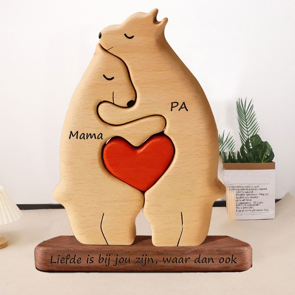 Gepersonaliseerde knuffelberen houten familiepuzzels blokken Uniek familieblok cadeau voor moeder en oma Moederdag cadeau