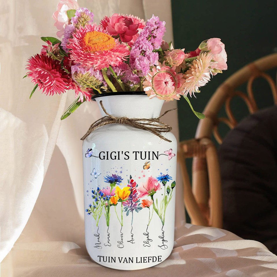Gepersonaliseerde Mama's Tuin Kunstprint Geboortebloem Familie Vaas met Kindernamen Unieke Binnencadeaus voor Mama en Oma Moederdagcadeaus