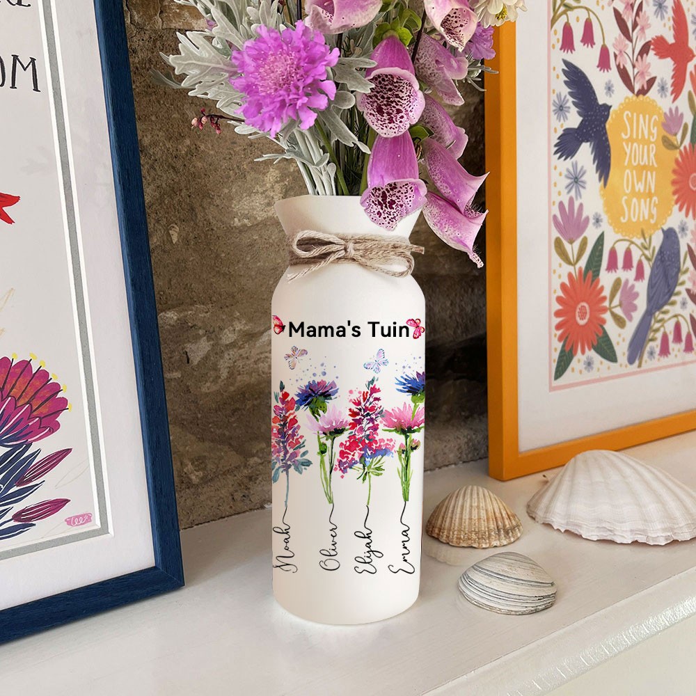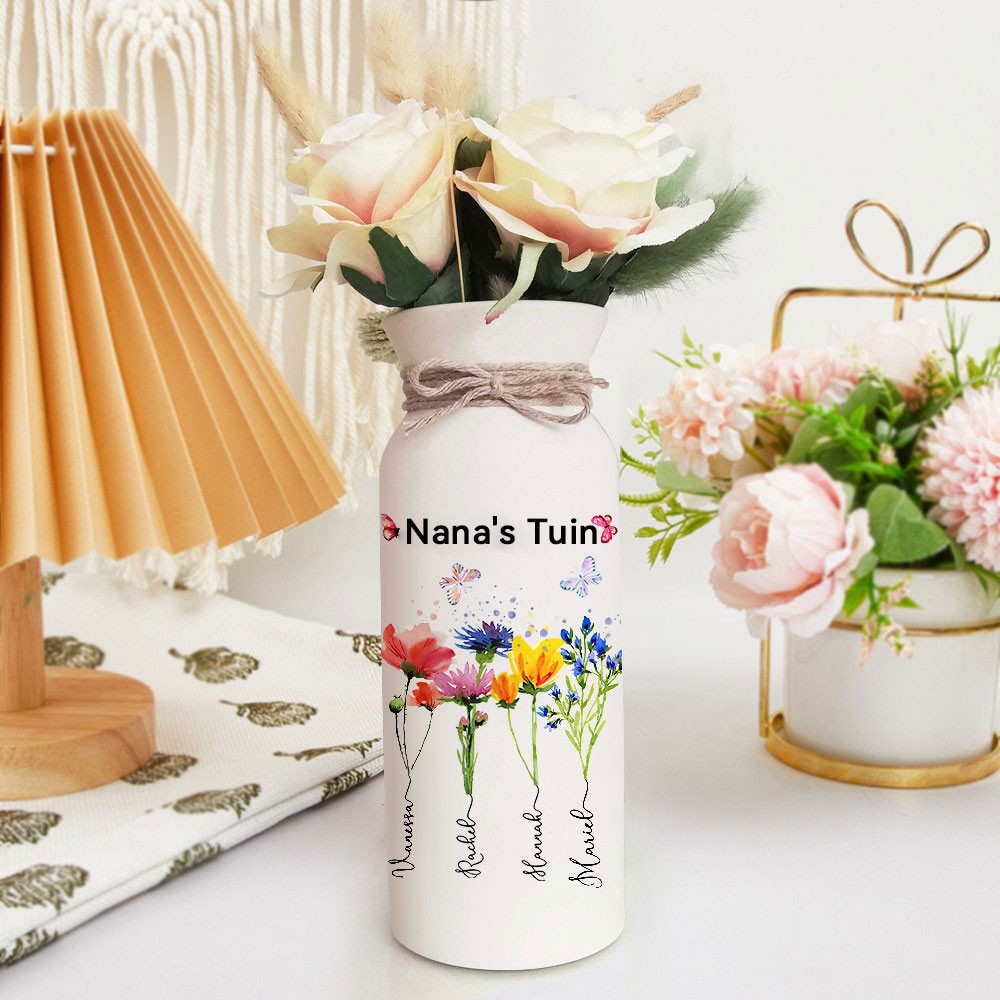 Gepersonaliseerde nana's tuin kunstprint, geboortebloemvaas met namen van kleinkinderen, verjaardagscadeau, uniek familiecadeau voor binnen voor moeder, oma, Moederdagcadeaus