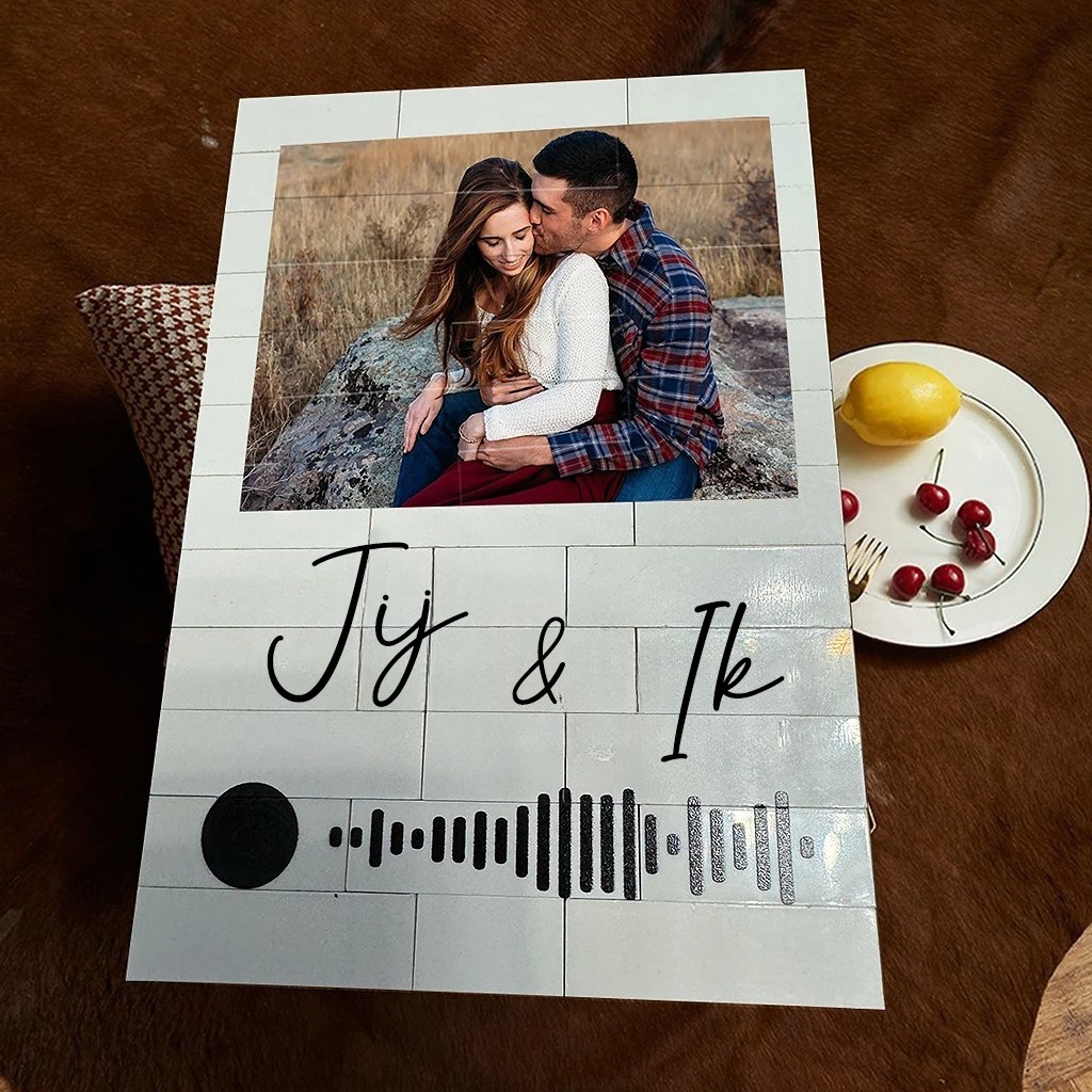 Gepersonaliseerde Spotify Muziek Nummer Foto Bouwblok Puzzel Jubileum Cadeaus voor Haar Valentijnsdag Cadeau voor Koppels