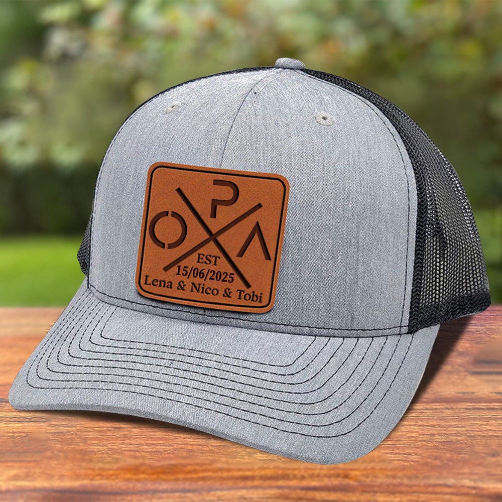 Gepersonaliseerde zomerzonnehoed van echt leer met datum en naam van het kind, perfect cadeau voor papa, uniek cadeau voor Vaderdag