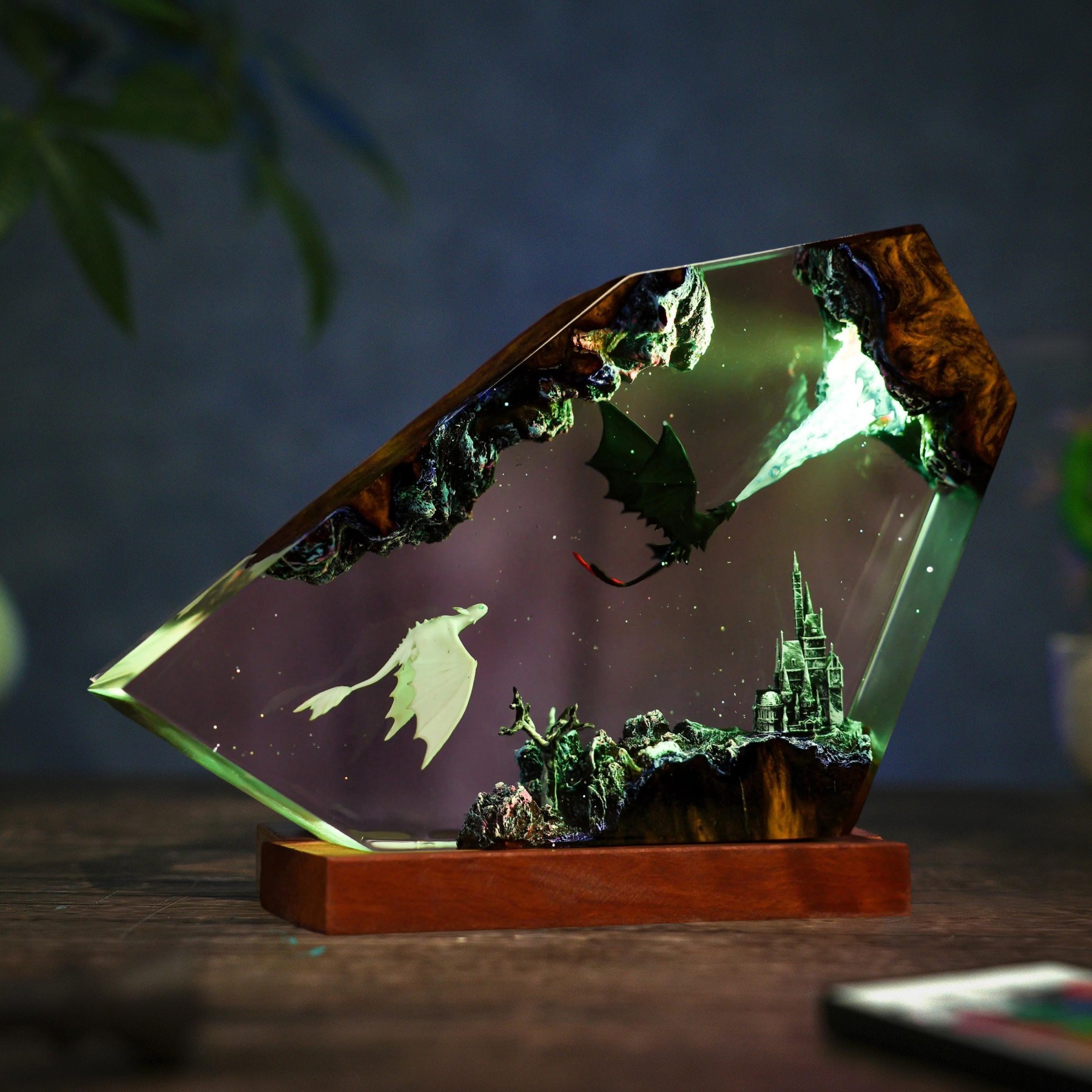 Handgemaakte Ijsdraak Lamp van Epoxyhars en Hout | Kerstcadeau voor Koppels | Verjaardagscadeau voor Hem