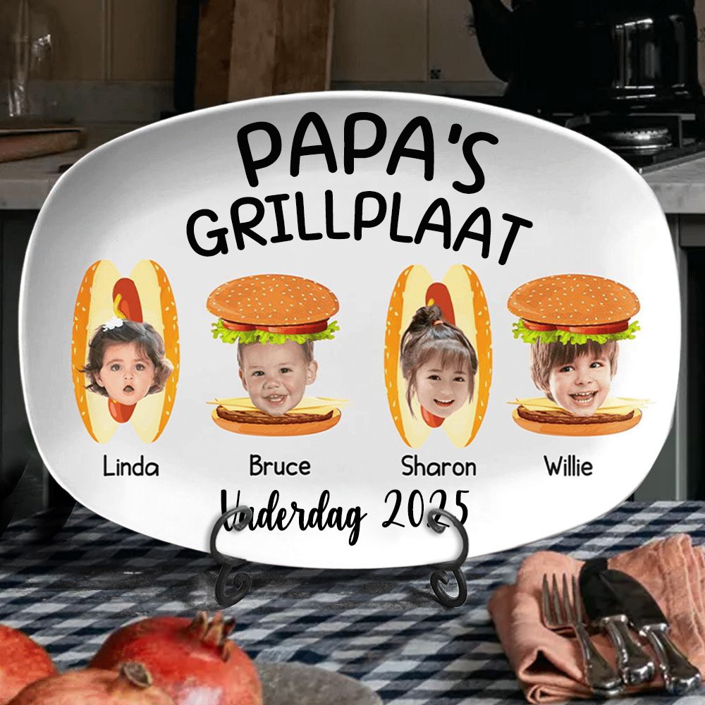 Personaliseren van kunstafdruk op bakplaat met de portretfoto en naam van je kind, een aandenken en cadeau voor papa, een uniek Vaderdagcadeau idee