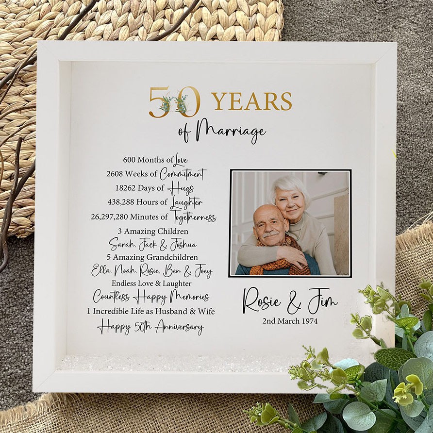 Gepersonaliseerd 50 jaar huwelijk lichtgevende lamp frame jubileum cadeau voor vrouw echtgenoot kerstcadeaus
