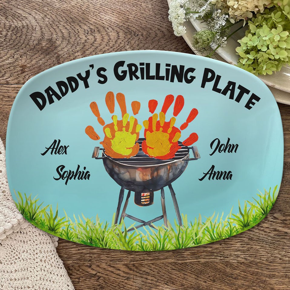 Gepersonaliseerde kunstdruk Handafdruk Papa's grillplaat met kindernamen Vaderdagcadeaus